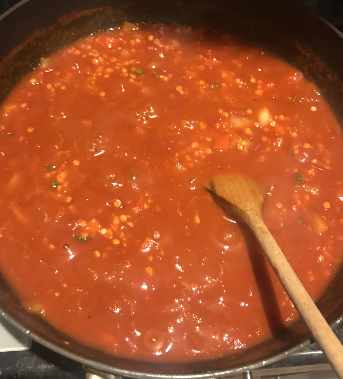Once boiling, add the lentils and reduce heat so it's at a gentle simmer. Cook for 15 minutes, or until lentils are mostly tender. You may have to add a bit more water if the mixture is looking too dry.