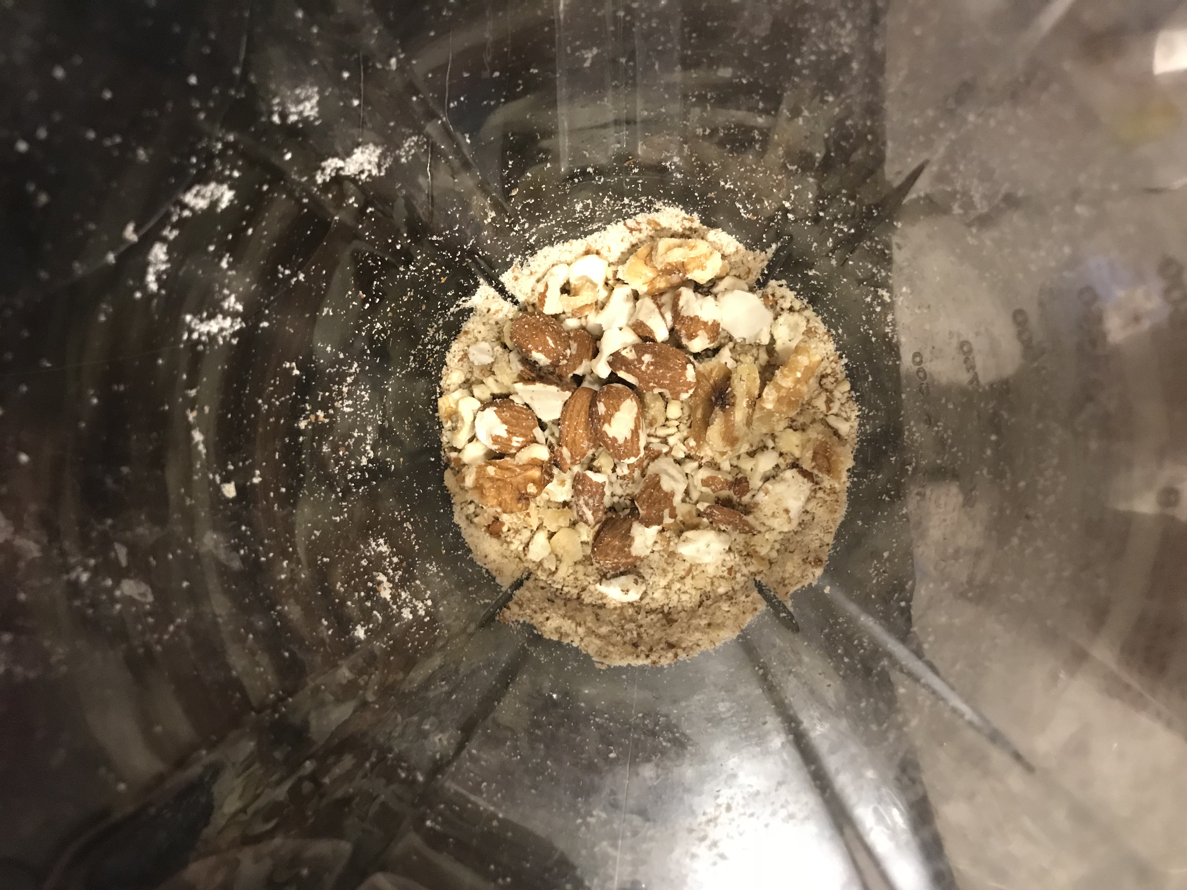 - Add the nuts to a blender or food processor and blitz for a few seconds to break the nuts up a little.