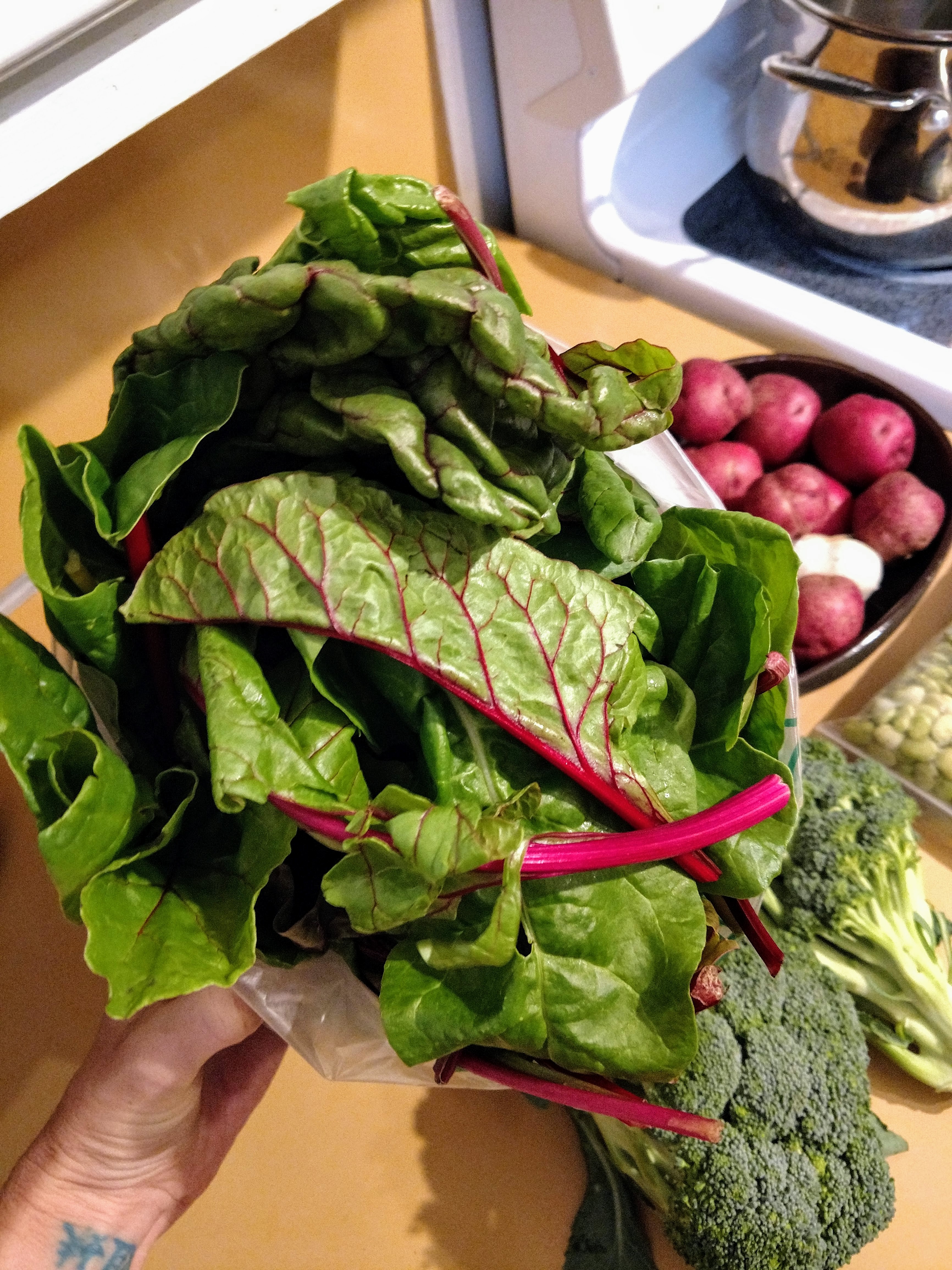 - 4 heaping cups chopped rainbow chard (can sub kale or another green)
