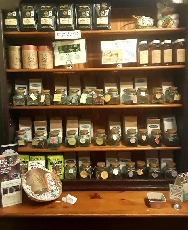 Inside they offer a wide array of loose organic tea, coffee, yerba mate, and honey for sale.