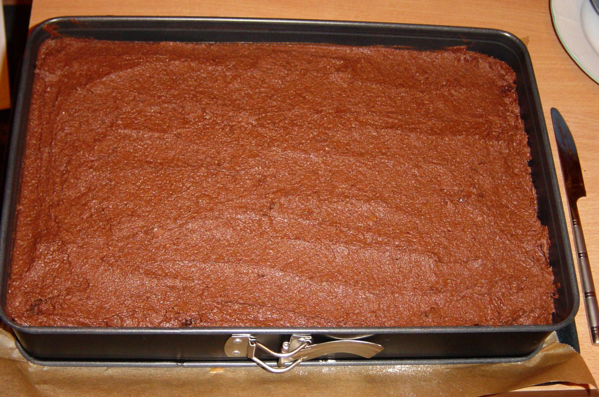 - Pour the resulting dough into a brownie baking sheet (covered with backing paper).