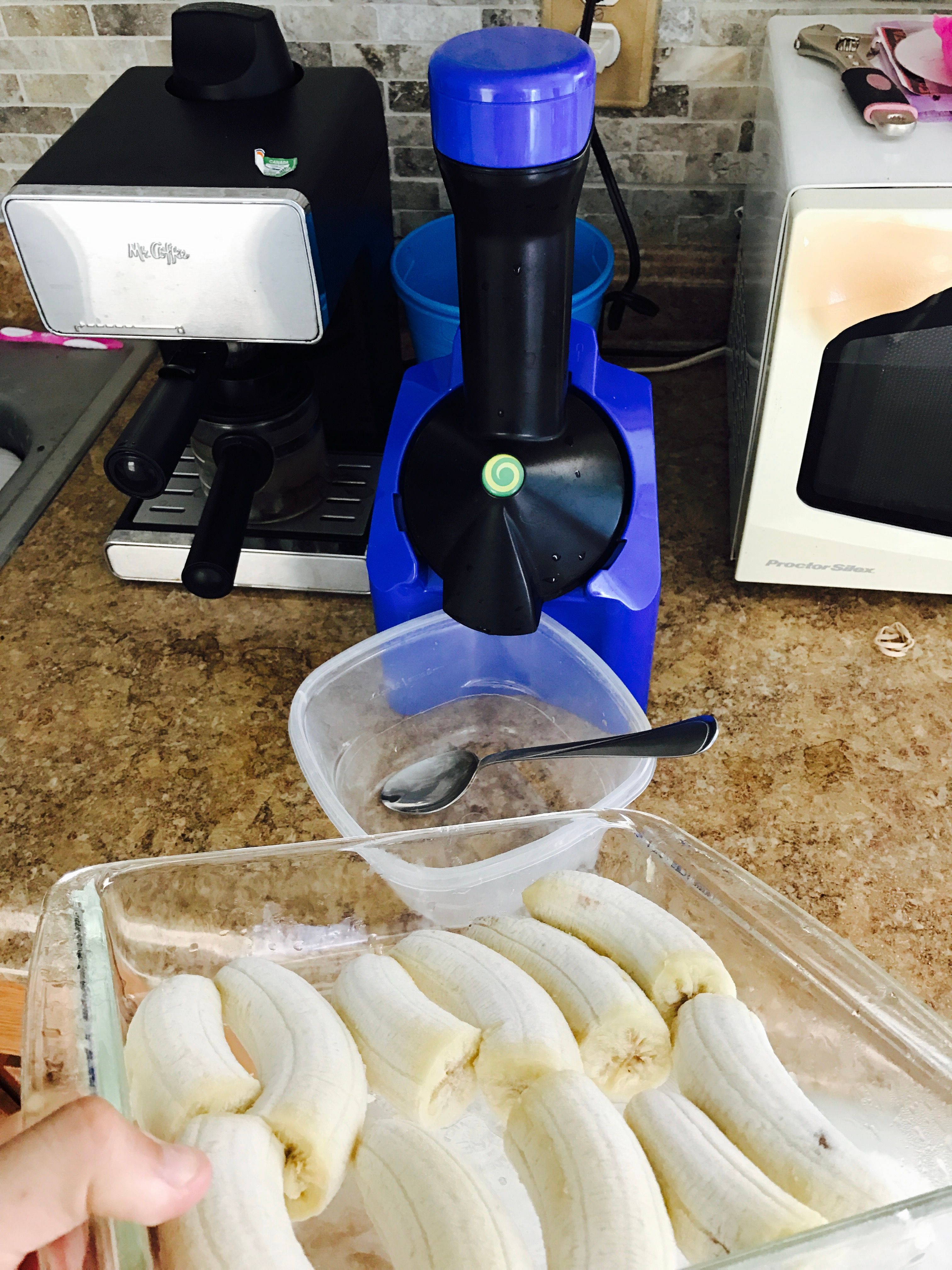 I'm going to show you how I make one of my absolute favorites: Homemade, vegan banana ice cream "Nice-Cream" using my Yonanas.