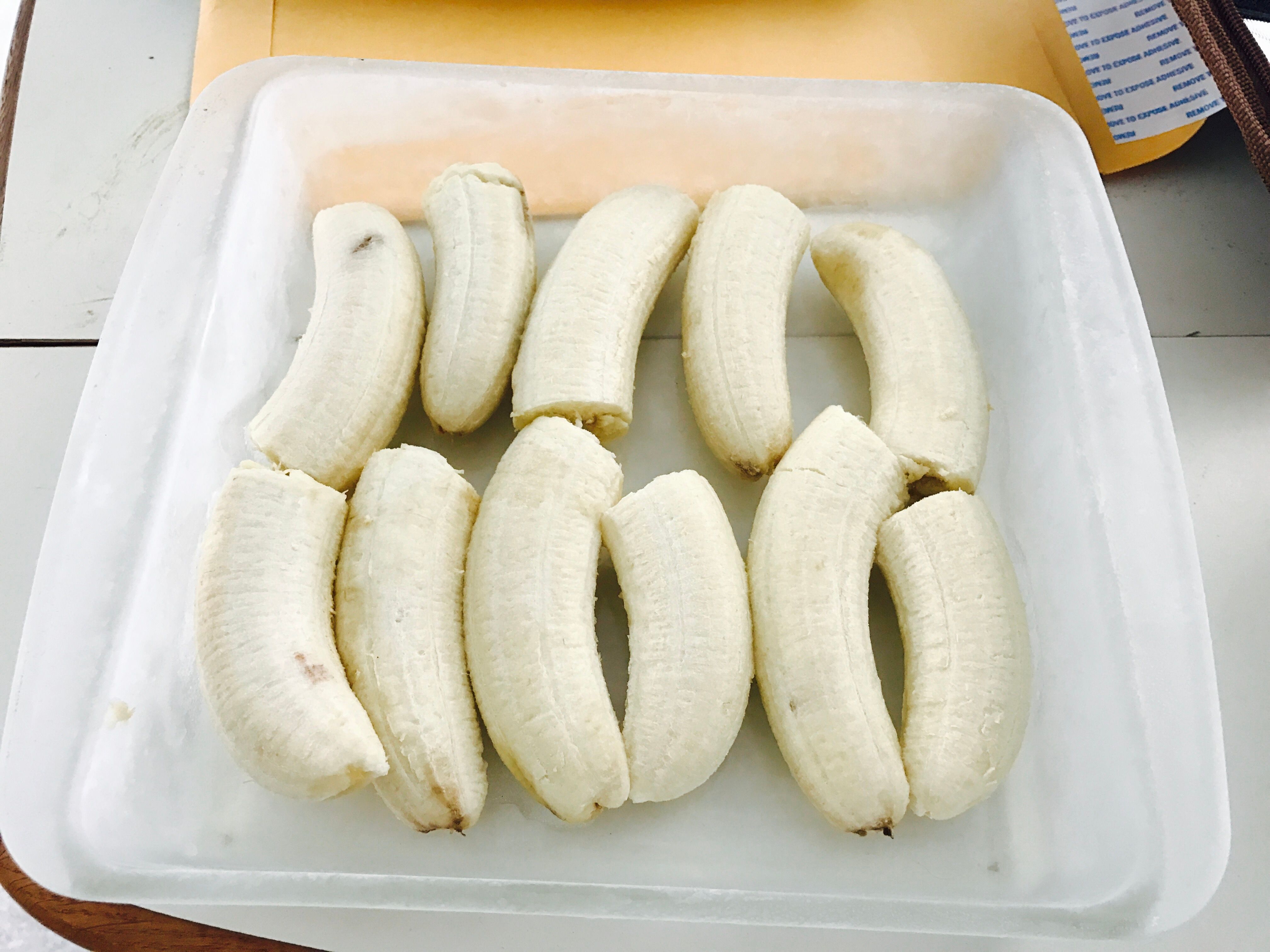 I like to collect bananas 1 or 2 at a time that are very ripe and add them to my container in the freezer. Then when I have enough, I make it in the blender. I always have some frozen berries to mix in with it. Peanut butter is also good mixed in!