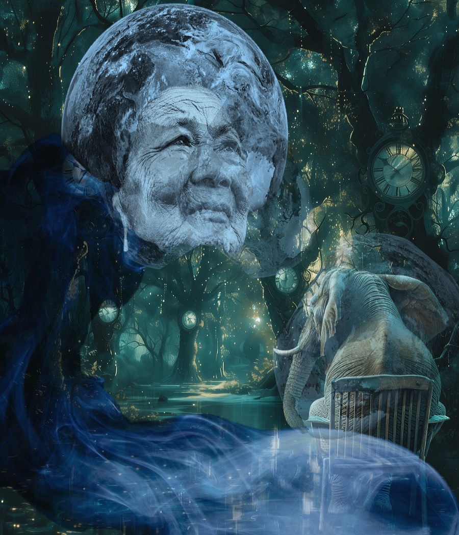 Me gustó mucho toda la simbología utilizada en su creación: la anciana que presumimos siempre llena de sabiduría por su edad, el bosque de árboles de pie aún con el paso del tiempo y el paciente elefante con su inmensa memoria.