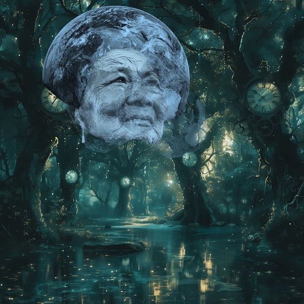 El siguiente paso fue añadir el rostro de una mujer anciana y el planeta azul convertido en su cerebro para personificar la sabiduría.