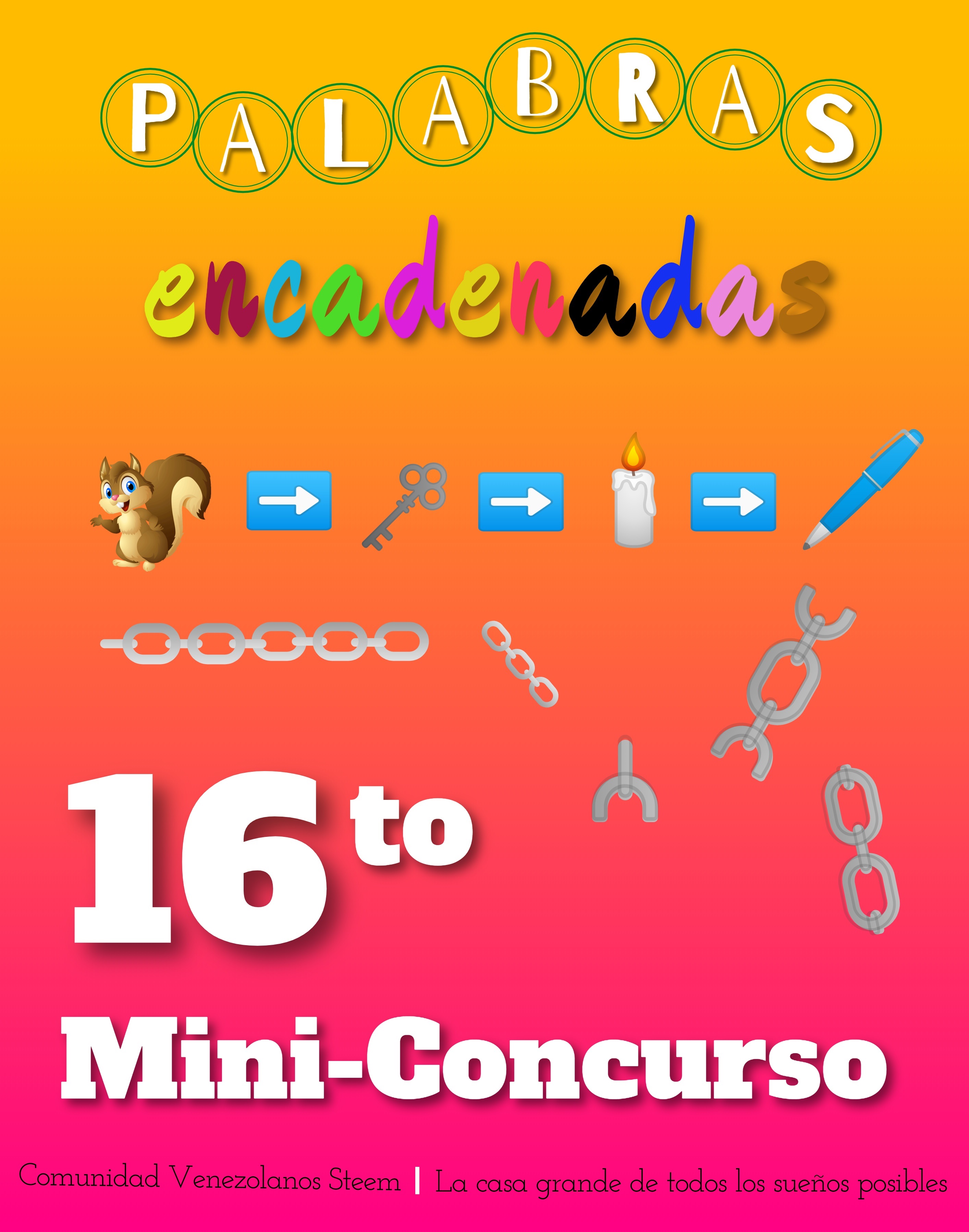 • Utiliza el título: 16to Mini Concurso – Palabras encadenadas + tu usuario