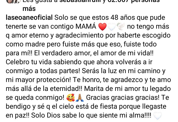 Mariana Seoane se despide de su madre tras su muerte por cáncer. Conmocionada por la pérdida, la cantante comparte su dolor en redes sociales y recuerda el legado de su ser querido.