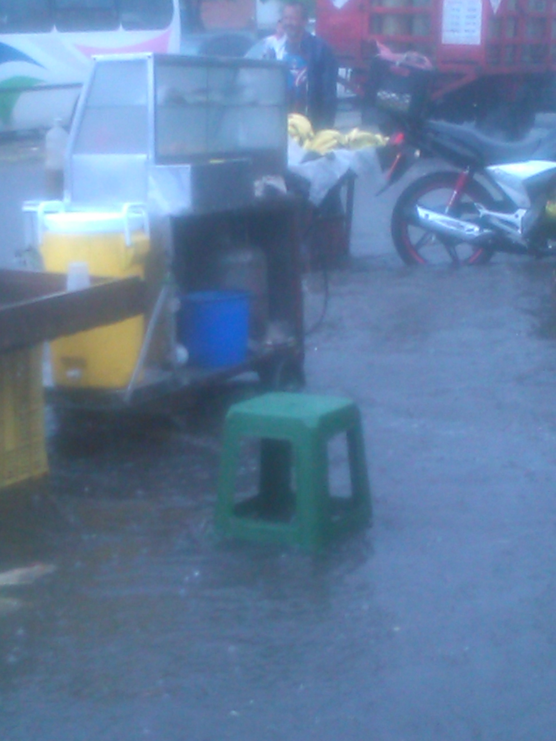 Nos llevamos una mojadota y algunos vendedores se les mojo la mercancía. Lastima que no pude fotografiar un perro que buscaba escampar por el alguno en el que estaba, termino metiéndose debajo de una carreta, inteligente el animalito.