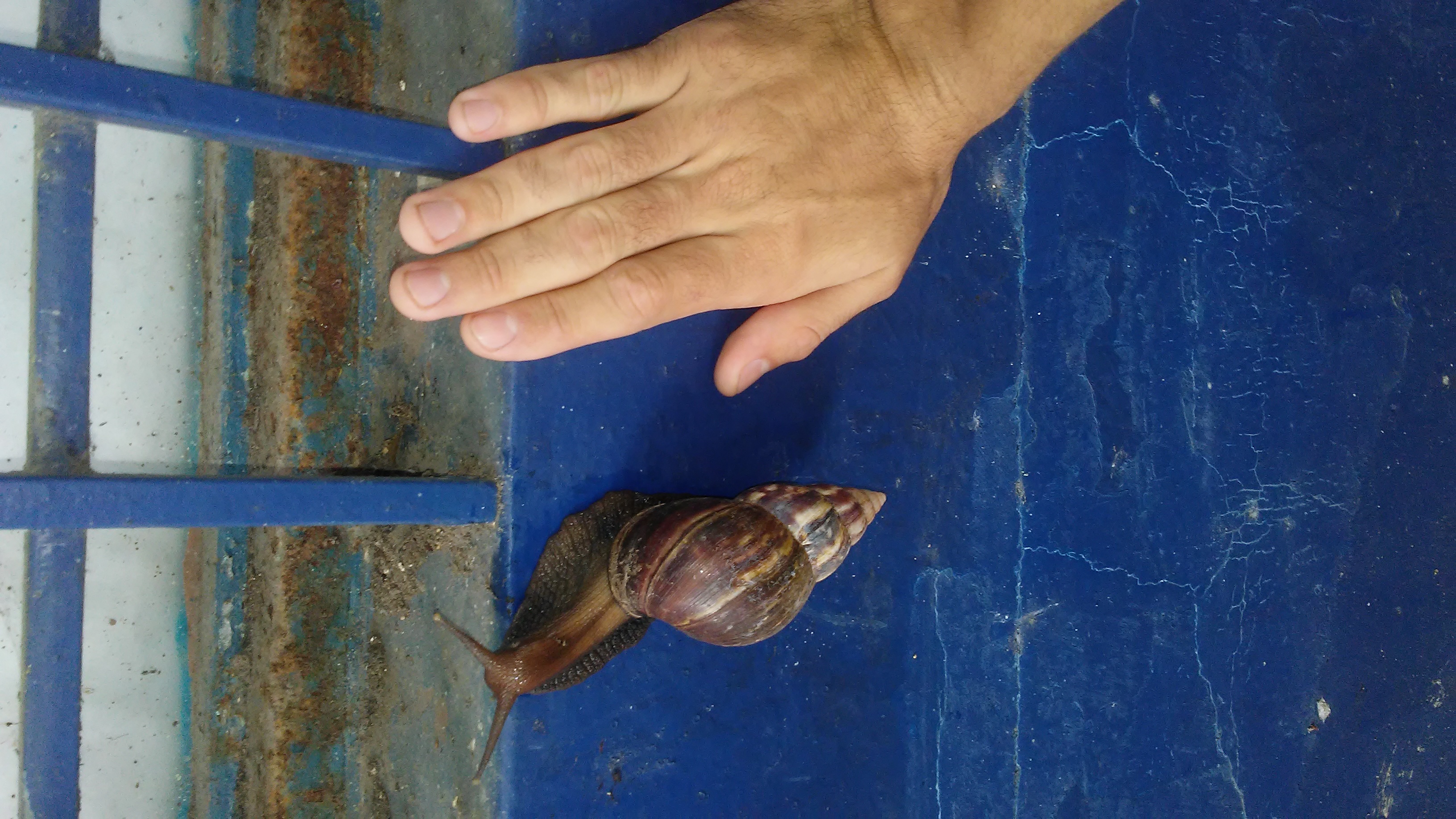 Vean que este caracol es casi del tamaño de mi mano, sin duda sorprendente, así mismo como este, hay muchísimos caracoles en la facultad, están esparcidos por toda la escuela de ingeniería mecánica, es increíble, como la naturaleza puede ir y llegar hasta ti sin que tú te des cuenta, por muy peligrosos que sean y que están considerados una plaga, fueron una sorpresa bastante extraña para nosotros y algo digno de compartir.