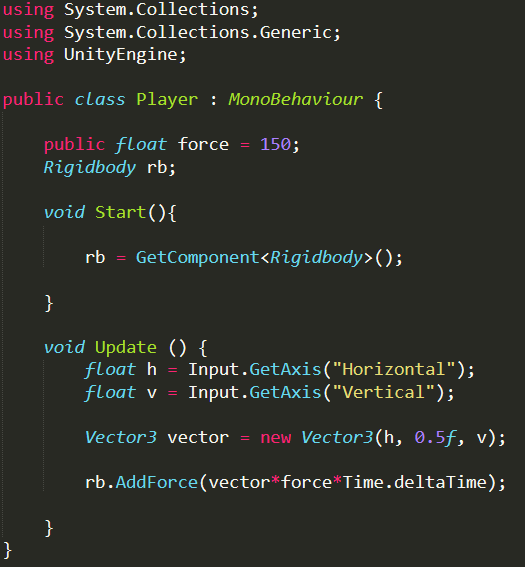 Lo que hacemos es acceder desde él al Rigidbody del jugador, y mediante unos Inputs de teclado, le aplicamos una fuerza que hemos definido previamente.
