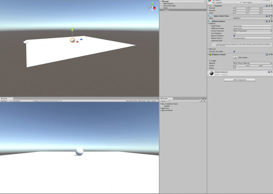 █ En primer lugar, nuestra esfera deberá contener un Rigidbody para que a través de un código podamos aplicar una fuerza sobre él.