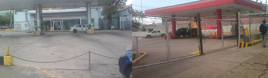 You can see in these photographs the fuel pumps totally closed, since there is no gasoline for three days.