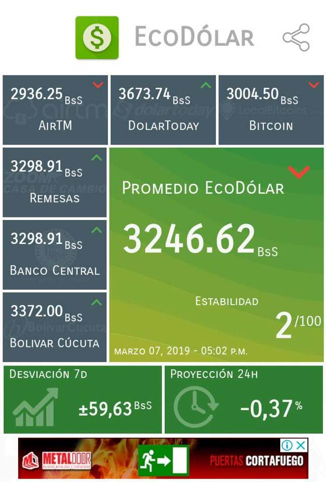 Also the average price of bolívar with respect to the dollar. Its stability and if it is on the rise or fall, the projection of the dollar in 24 hours. You can see the behavior that the bolivar has had with respect to statistics.