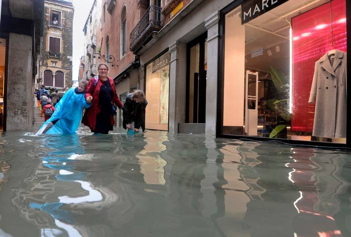 MILAN — Venice was inundated by an exceptional high tide Monday, putting three-quarters of the famed Italian lagoon city under water as large swathes of the rest of Italy experienced flooding and heavy winds that toppled trees and other objects, killing six people.