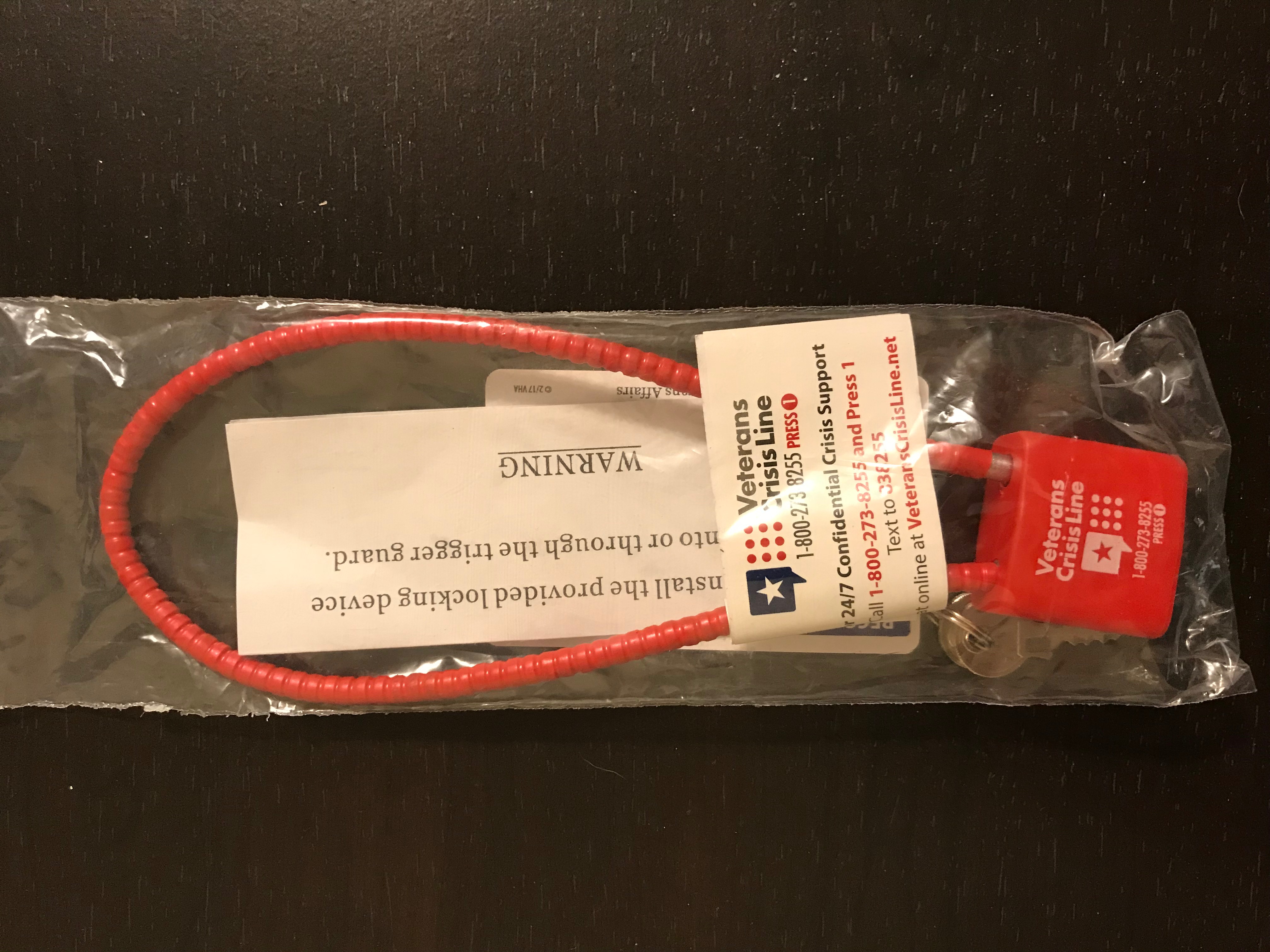 After being interviewed by a staff member, I was given a date that I was told was the "next available" appointment, which was actually in 56 days. 56 Days later, I would need to attend a new process they had started, called group orientation. I was sent home with Veterans Crisis Line cards and encouraged to call the line, even if I just "needed someone to talk to". Other resources available at this point included free pistol/gun locks, also brought to you by the Veteran's Crisis Line (below).