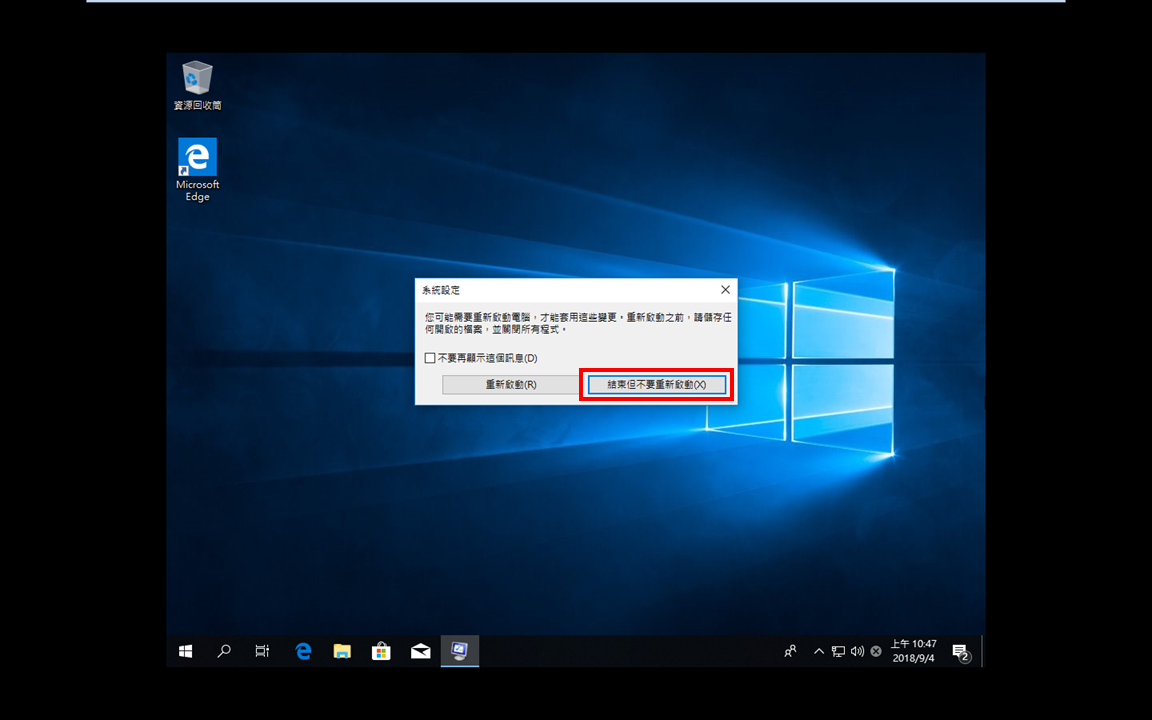 (6)因為我們還沒有刪除 Vhd_Test.vhd,故先選擇【結束但不要重新啟動(X)】。