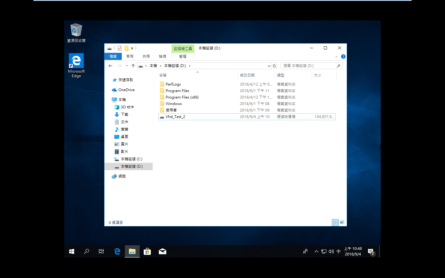 【筆記】在 VHD 內安裝 Windows 10【Part 08】接下來要演示如何設置預設的開機選項,以及如何從開機選單中刪除開機選項。在這邊我們選擇進入「Windows 10 Test 02」(由 Vhd_Test_2.vhd 製作)作業系統中