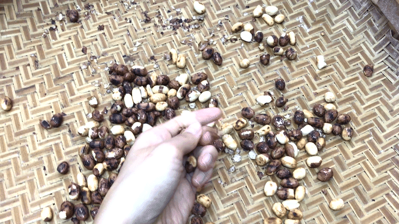 Step 2. Switch off the stove and keep them aside to cool down. Once they are cooled, remove the skin of the peanut by rubbing them lightly with both hand.