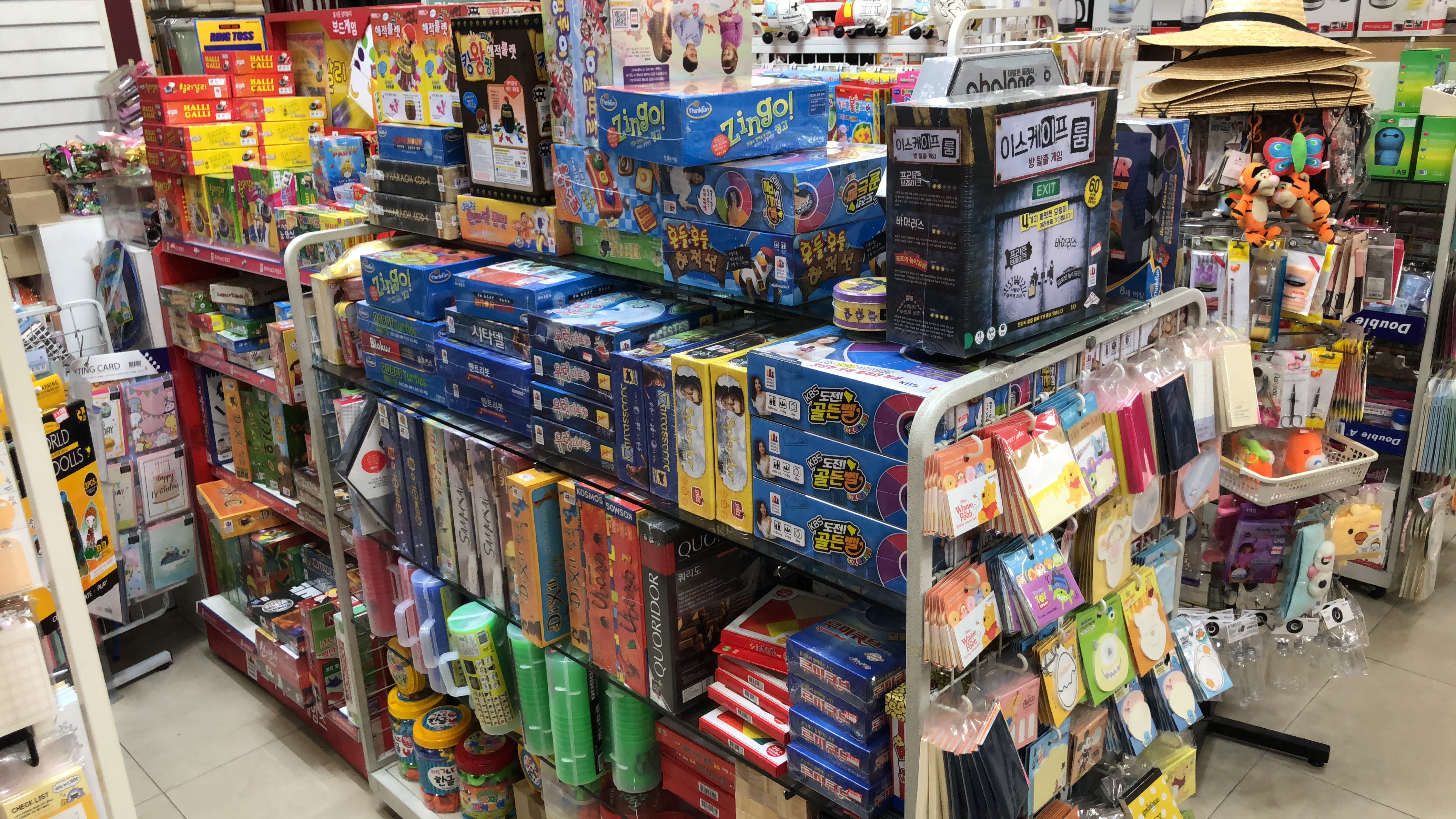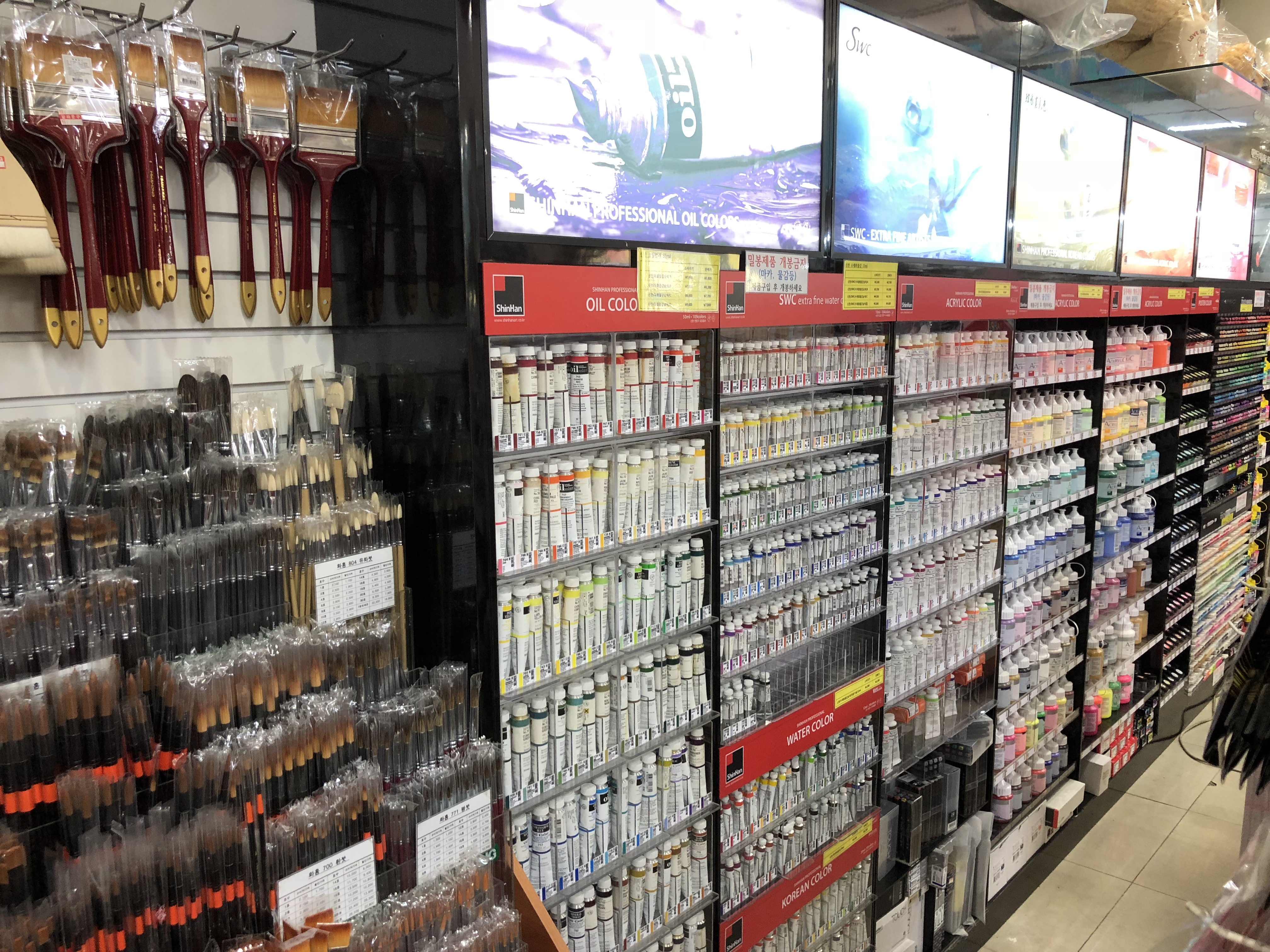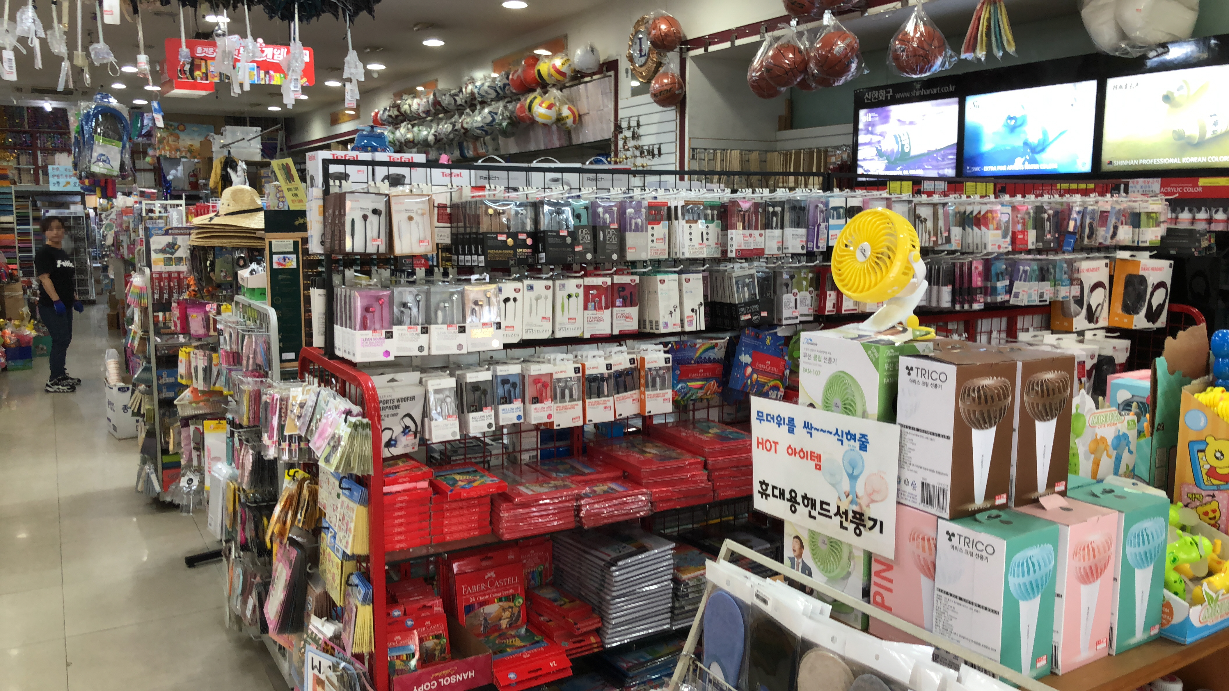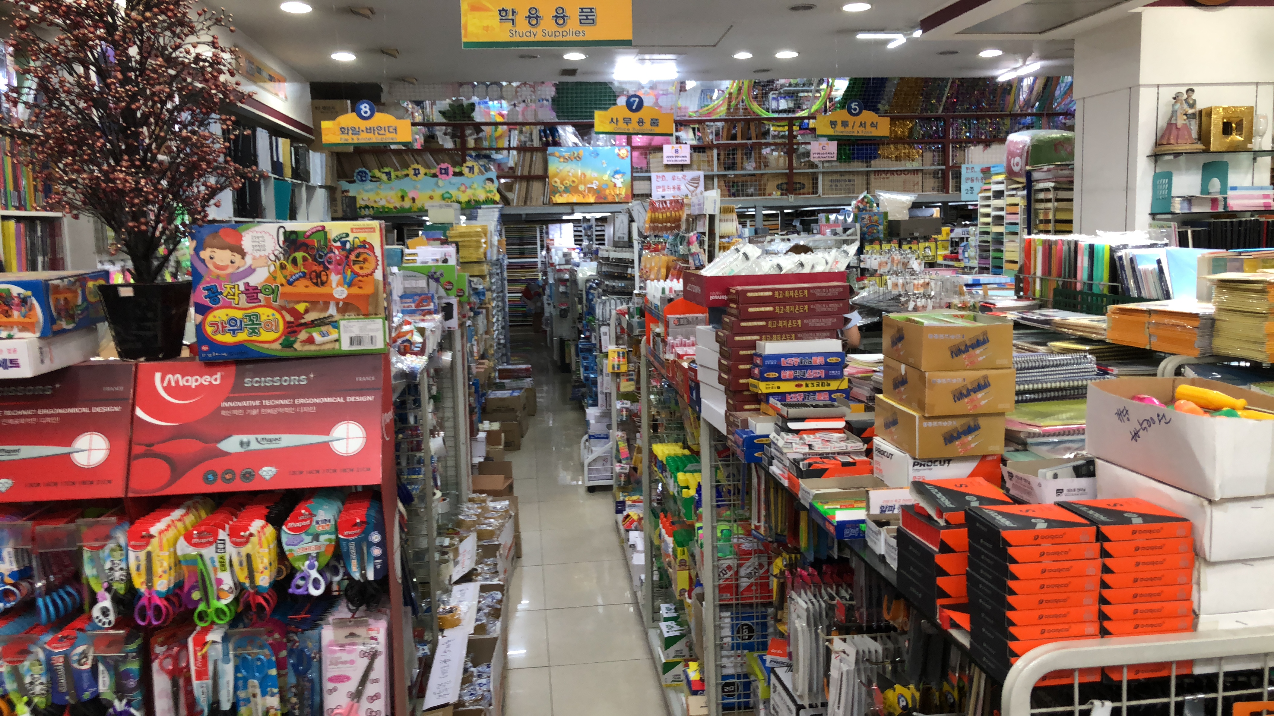 학용품, 사무용품, 봉투, 바인더 등 다양한 제품이 진열되어 있어요. 정말 없는게 없는 것 같아요.