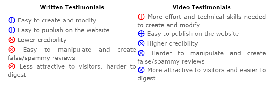 The below recommendations rely on the Video Testimonial Tool for Businesses that we created on Bizpages (https://bizpages.org/en/video-testimonials)