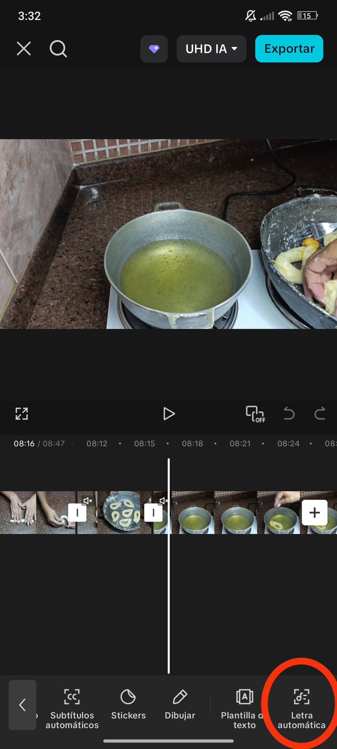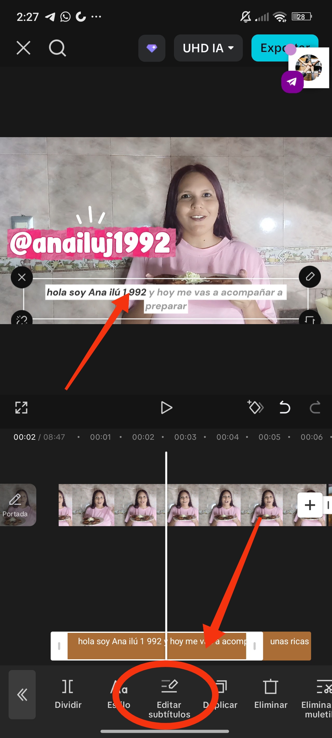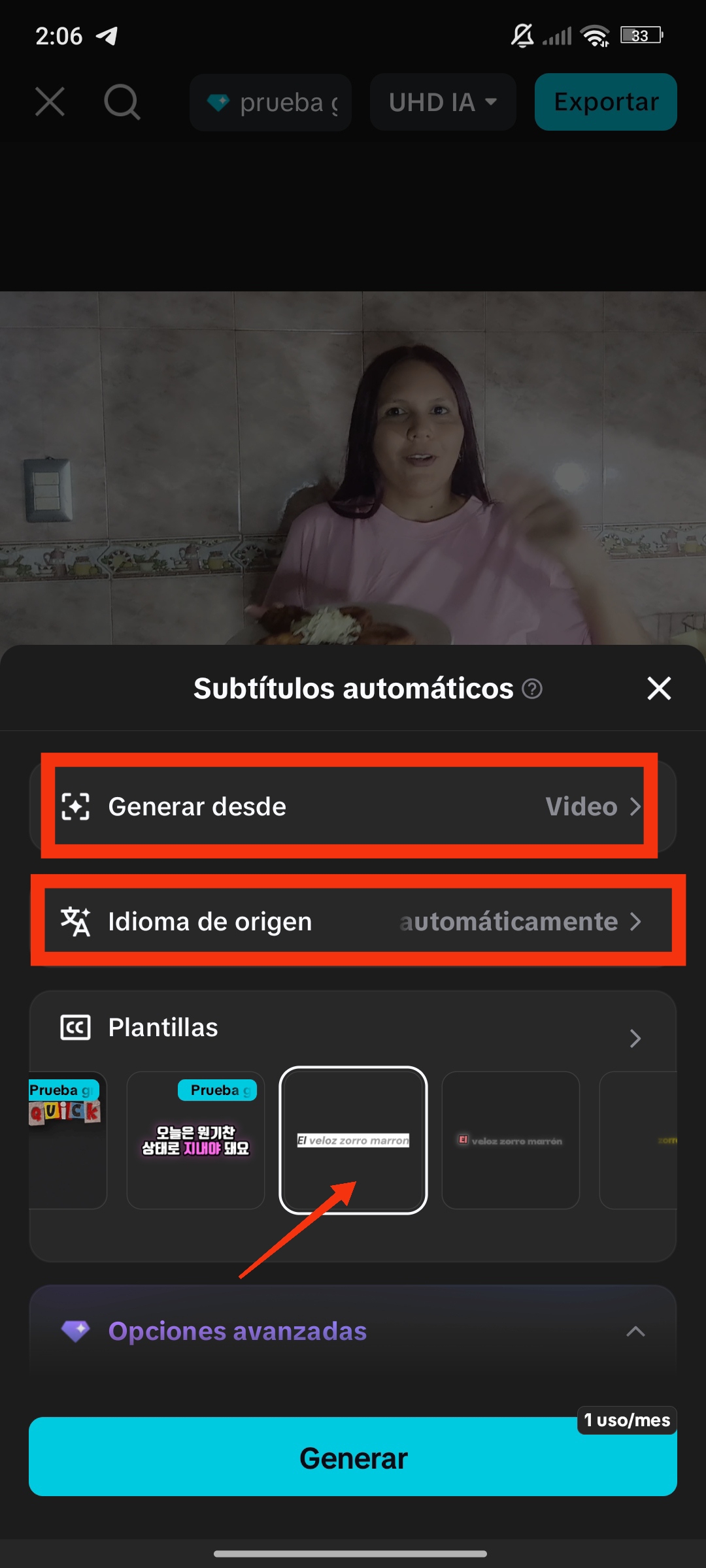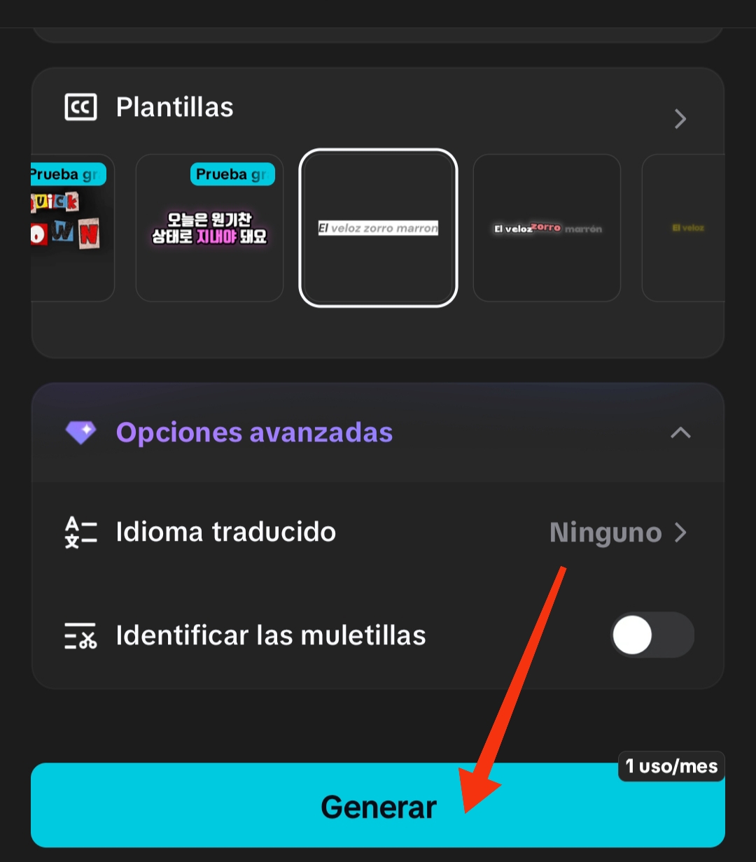 Dentro del menú de texto, podemos encontrar la opción de subtítulos automáticos.