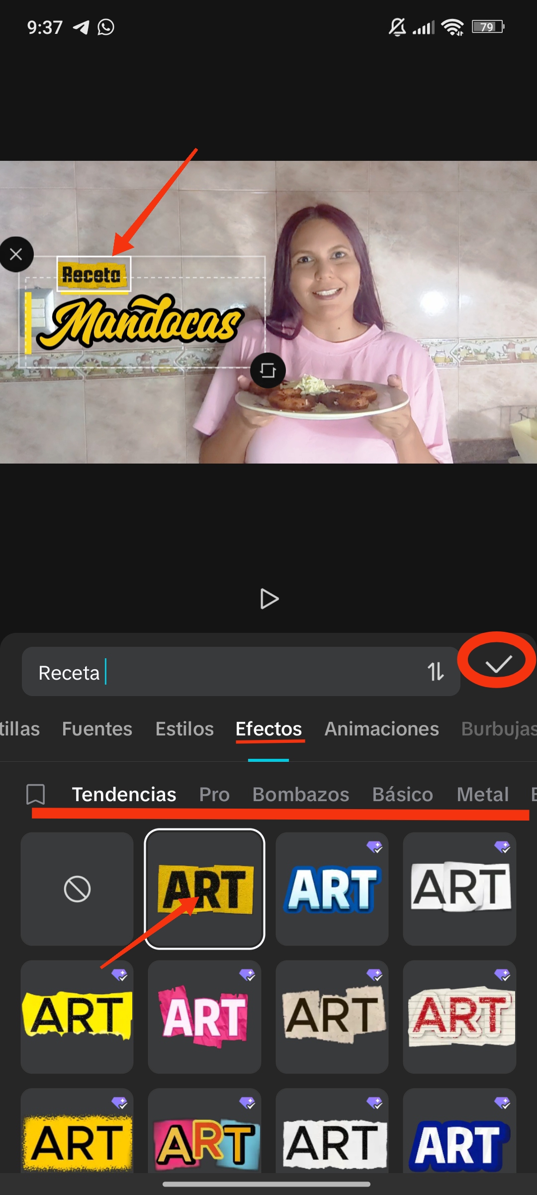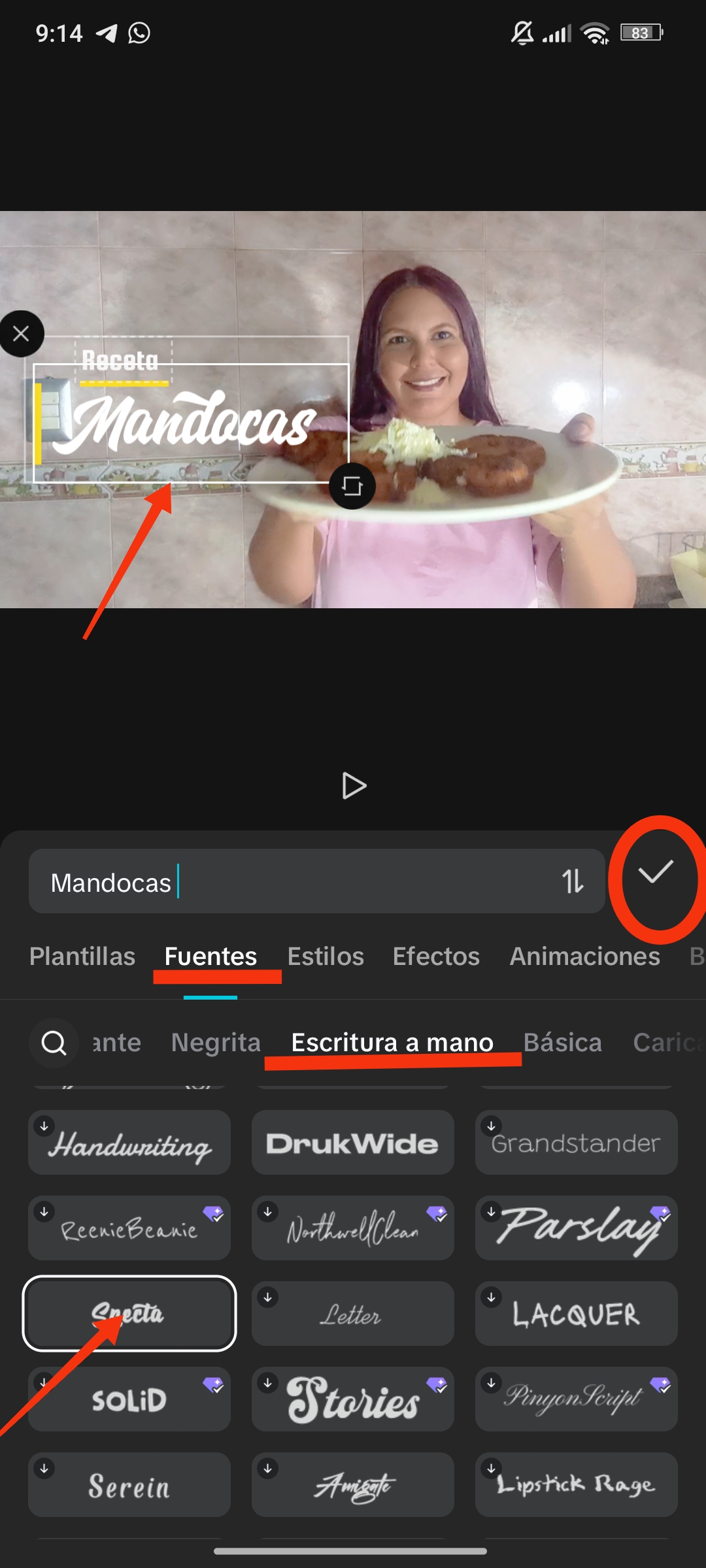 Toca la fuente que deseas para previsualizar y selecciona ✅ para aplicar.