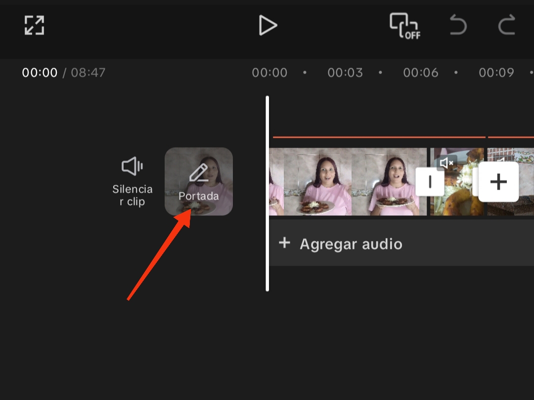 Para seleccionar una portada predeterminada para nuestro video, hacemos clic en "Portada" en nuestra línea de tiempo.