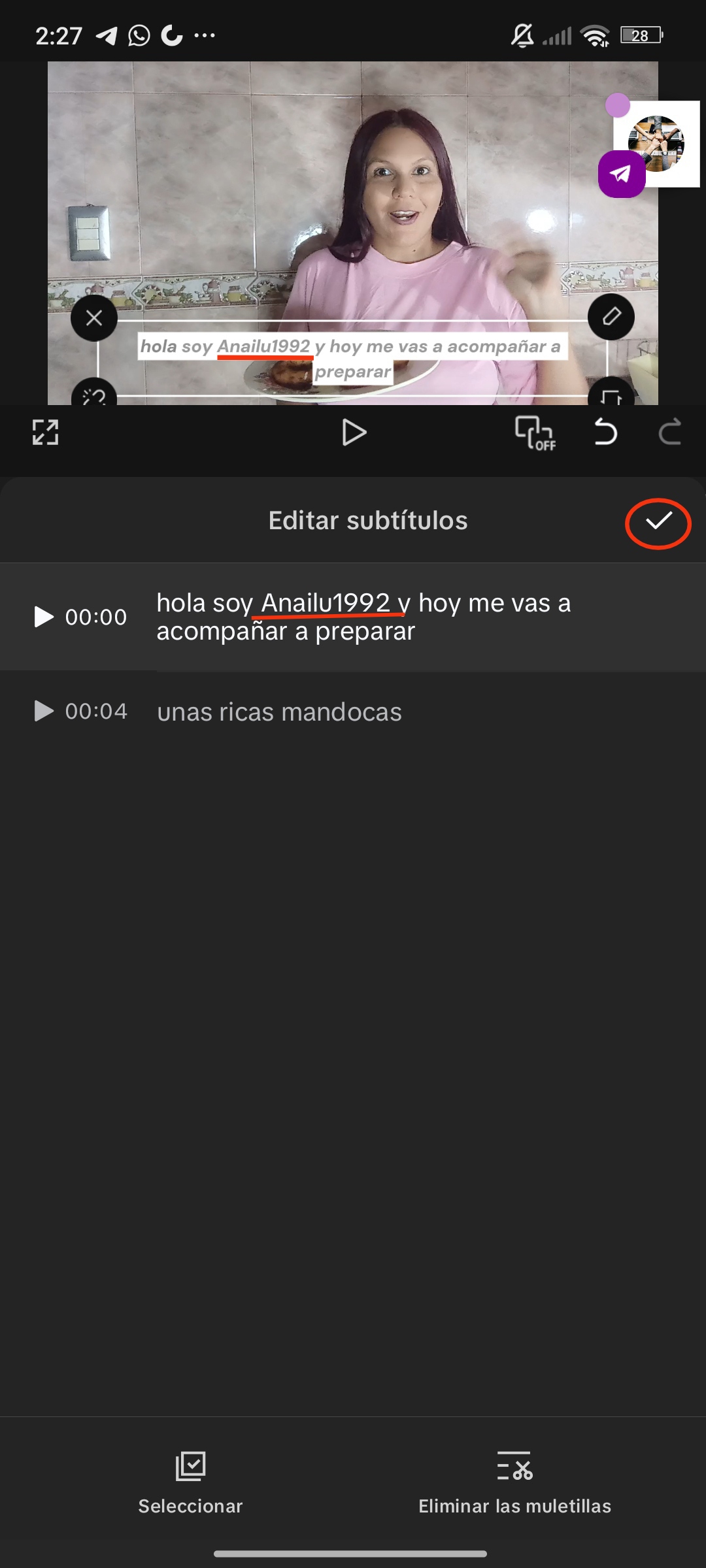 Así pude usar el subtítulo en otro idioma en mi video. Sé que es un proceso tedioso y un poco lento, ya que todo es manual.