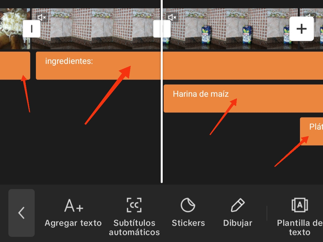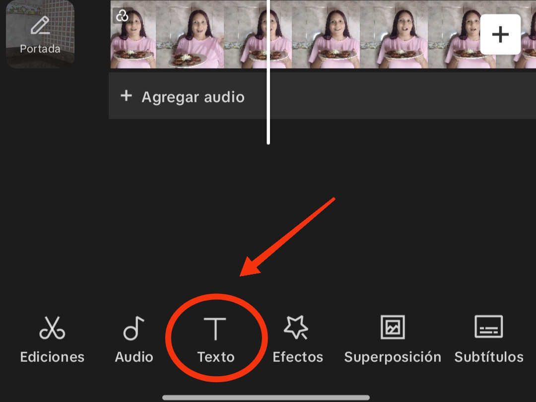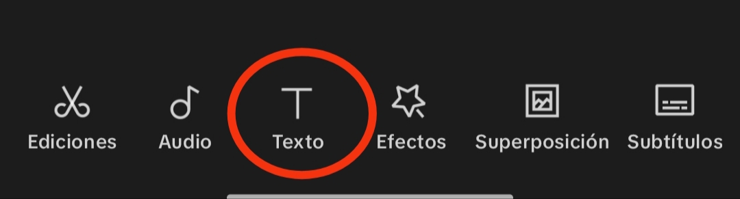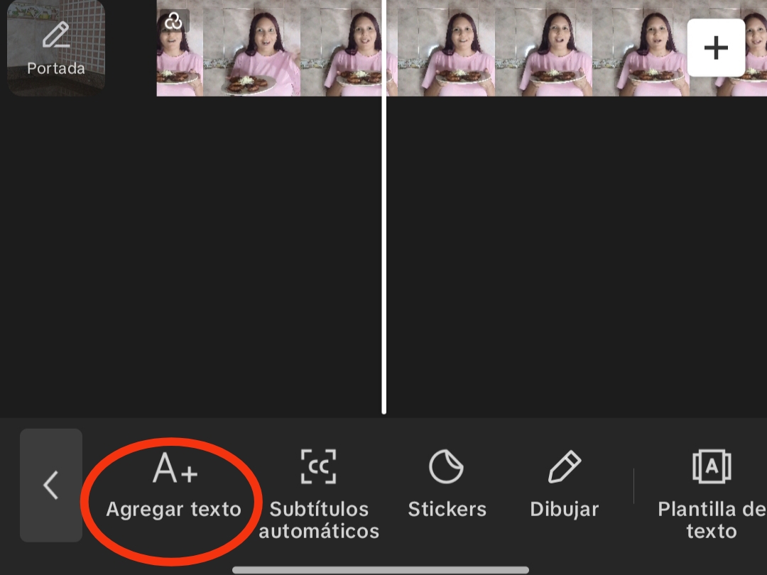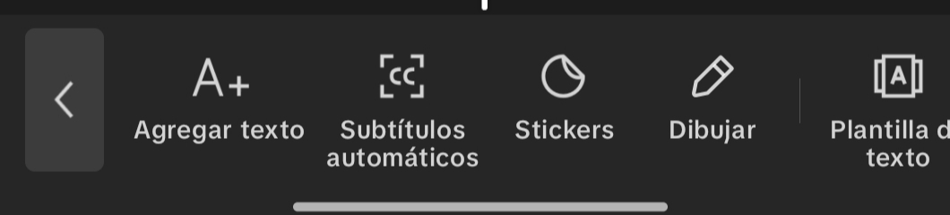 Al hacer clic en el ícono de texto, se despliega una opción en un nuevo menú, que incluye agregar texto, subtítulos automáticos, stickers, dibujar, plantillas de texto, texto a audio y letra automática.
