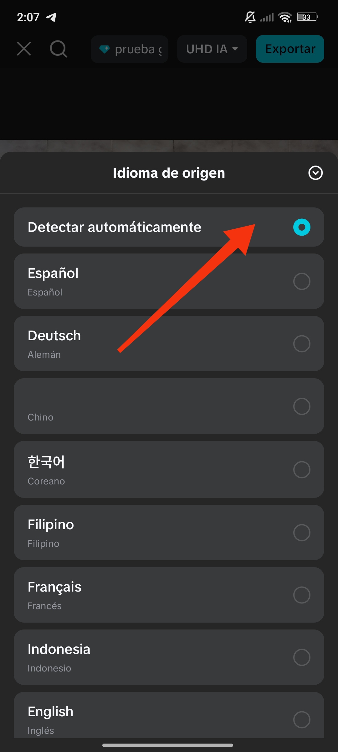 En "Idiomas", podemos seleccionar nuestro idioma de origen o simplemente dejarlo en la opción de "Detectar automáticamente".