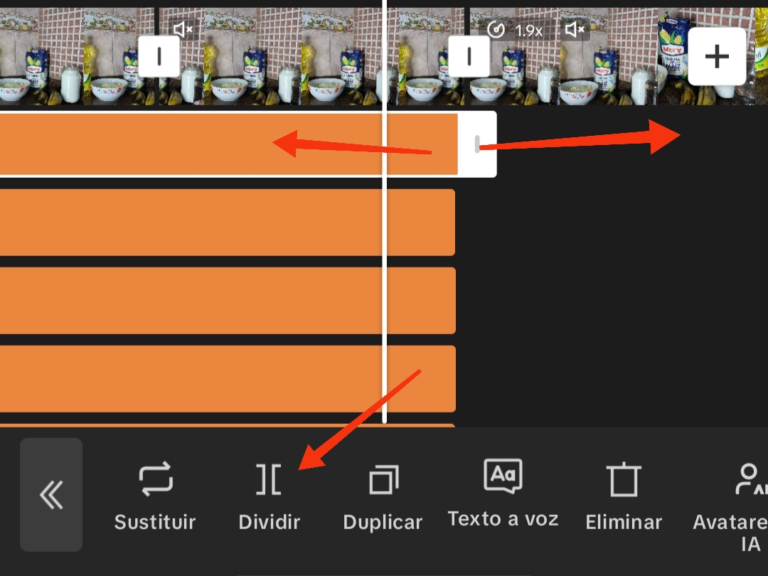 De inmediato, aparecerá en nuestra línea de tiempo, donde podemos dividir, duplicar, agregar animación o reflejar.