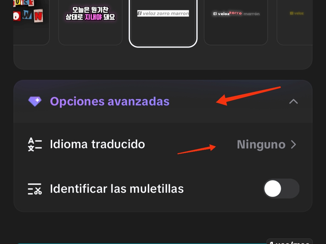 En "Opciones avanzadas", podemos hacer una traducción a cualquier idioma. sin embargo, esta opción solo está disponible en la versión paga.