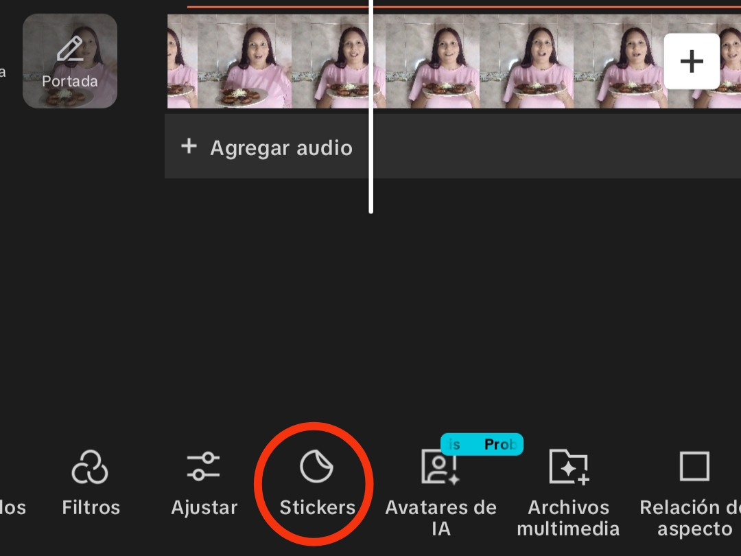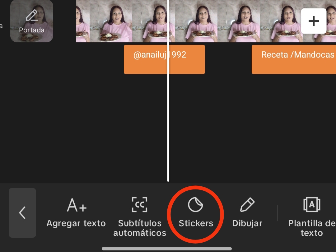 Tanto en el menú principal como en el menú de texto, podemos ver el ícono de stickers.