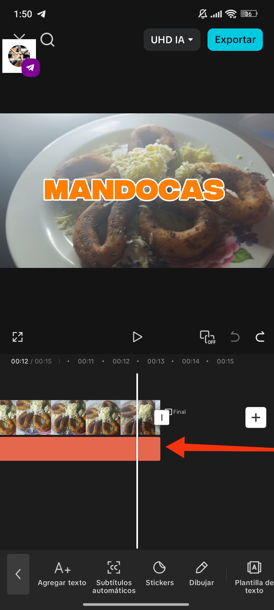 Al hacer clic en este ícono, nuestro texto se extenderá hasta el final de nuestros clips sin necesidad de arrastrarlo manualmente.