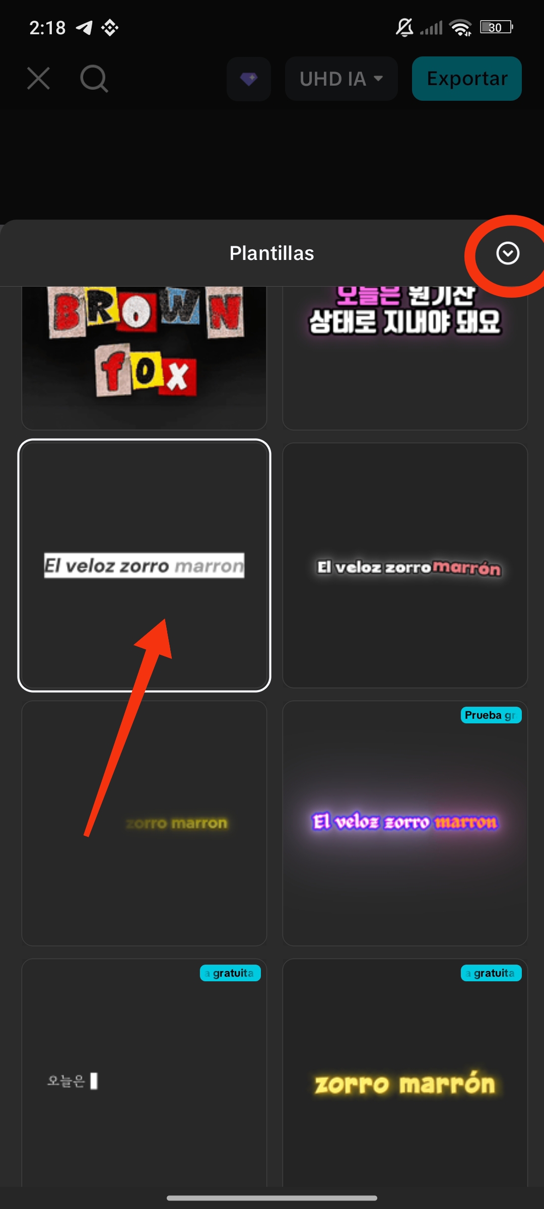 En el menú de texto también podemos encontrar estas opciones en el ícono de plantillas de texto.