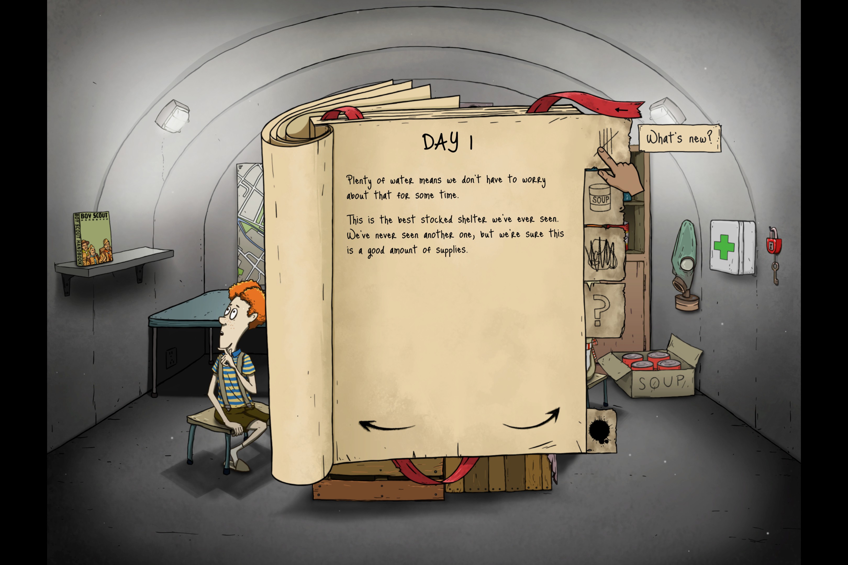 I was able to grab an ok supply of water and plenty soup. Good old soup. Lots of soup. We have a checkers board to keep us entertained and a scout handbook to keep us read. Ammo, no rifle. 1 first aid kit and a gas mask, which will come in handy in keeping us from getting sick on our supply runs into the radiated wasteland.