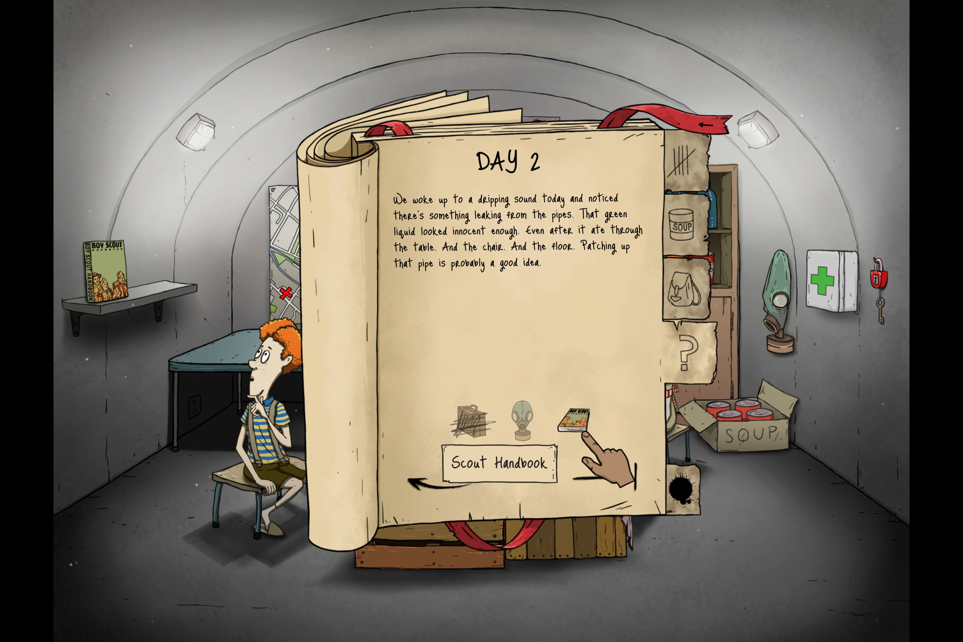 Some nasty green go was leaking out of some pipes. We didn't want to risk the gas so we used the scout handbook to see if it had any ideas....or we cleaned it up with some of the handbook pages.