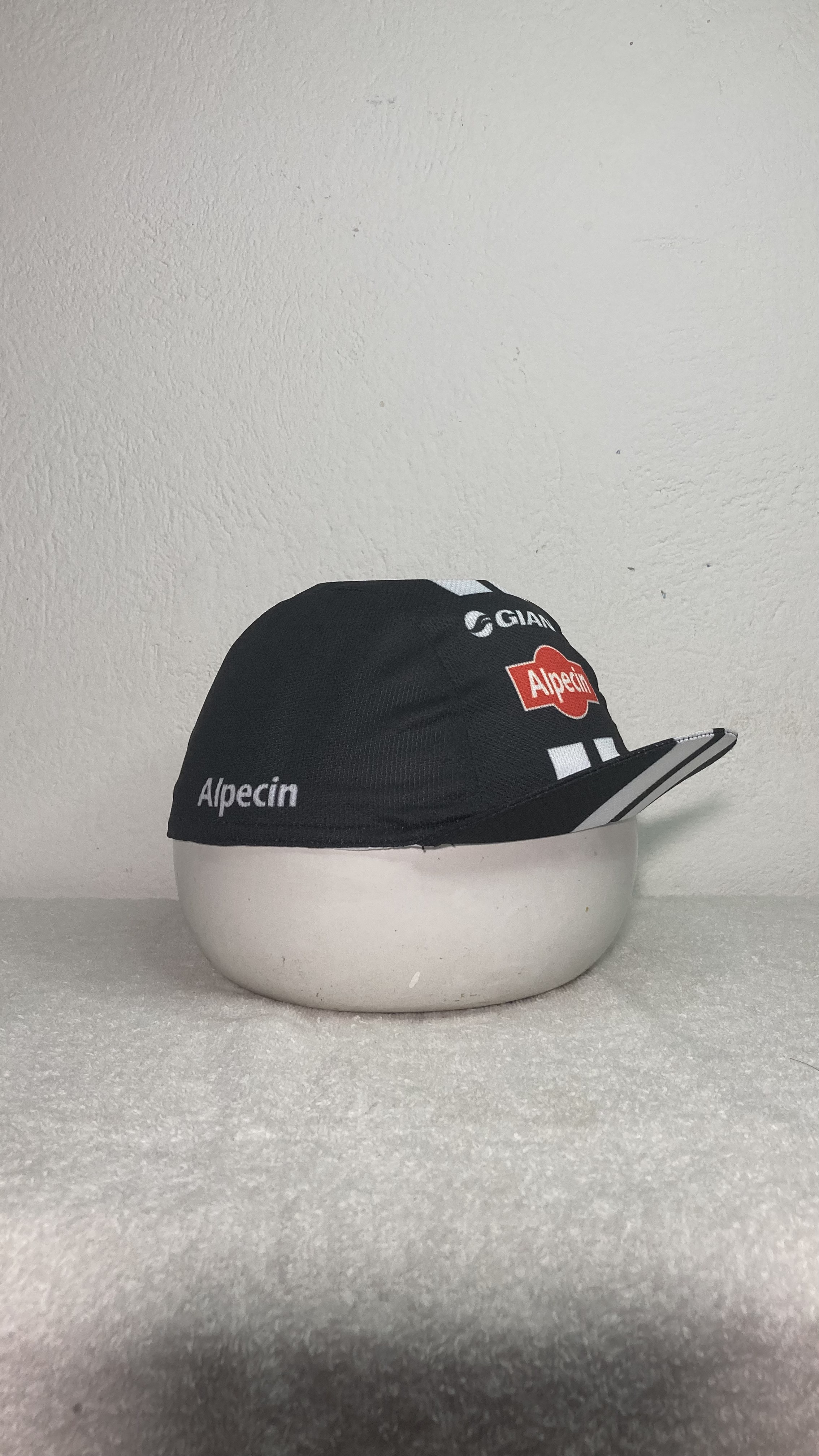 Este ejemplo uso un gorro de ciclista, el cual para sacarle una buena foto debo de colocarlo en una base que sea lo más similar a una cabeza. Aquí usé una olla de adorno y un platico de taza de café. Dando ese efecto circular no perfecto.