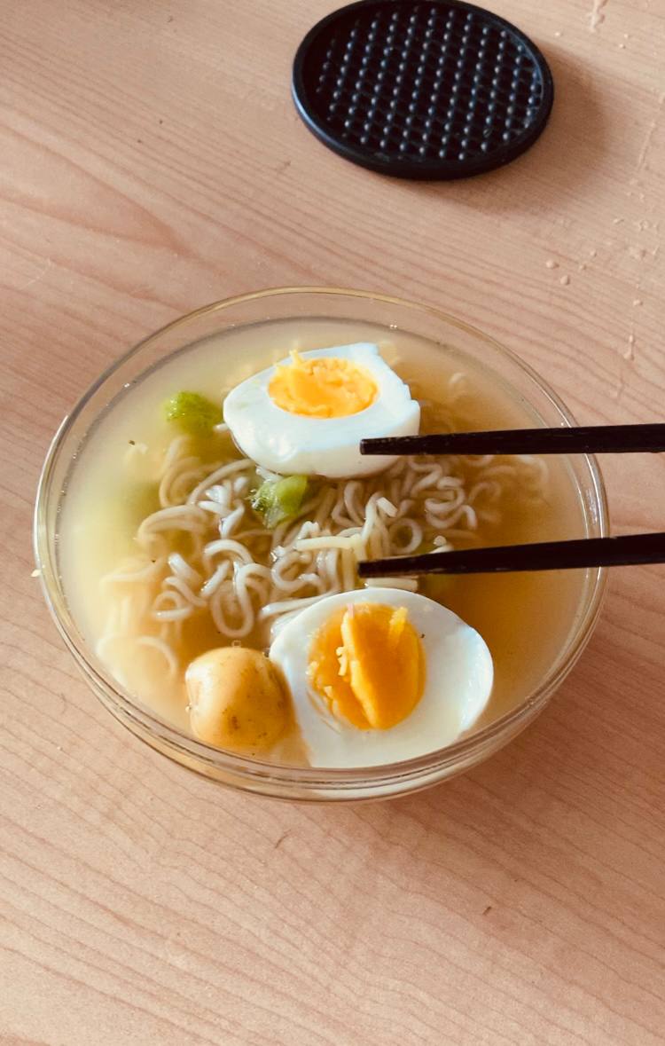 Como siempre, en casa de mi Maestro pruebo cosas diferentes. En esta oportunidad me cocinó ramen. Una comida típica de Japón, es como una sopita maggi muy rica con espaguetti jeje. También como de costumbre comí sushi y bebí cervecita jejeje