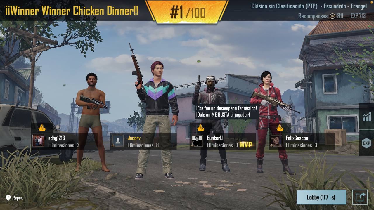 Ganamos muchas partidas, unas 8 de 10 diría yo, lo curioso es que hicimos equipo con un tal Felix que se convirtió en el 4 jugador de oro, hubo mucha química con él y eso permitió ganar varias. Espero que mis sobrinos se activen (quiten el castigo impuesto por sus padres) para poder agregarlos a las partidas.