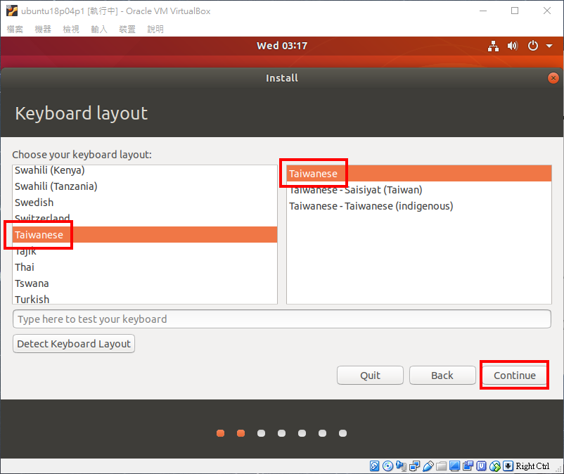點選左側【Taiwanese】→【Taiwanese】→【Continue】。
