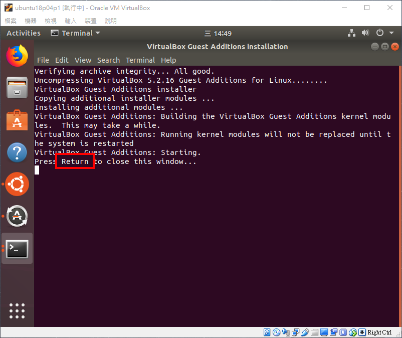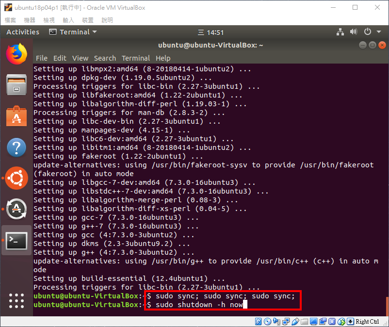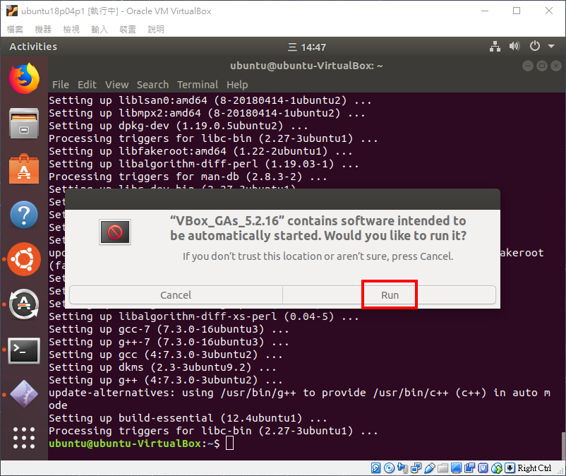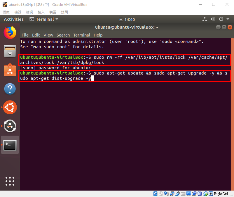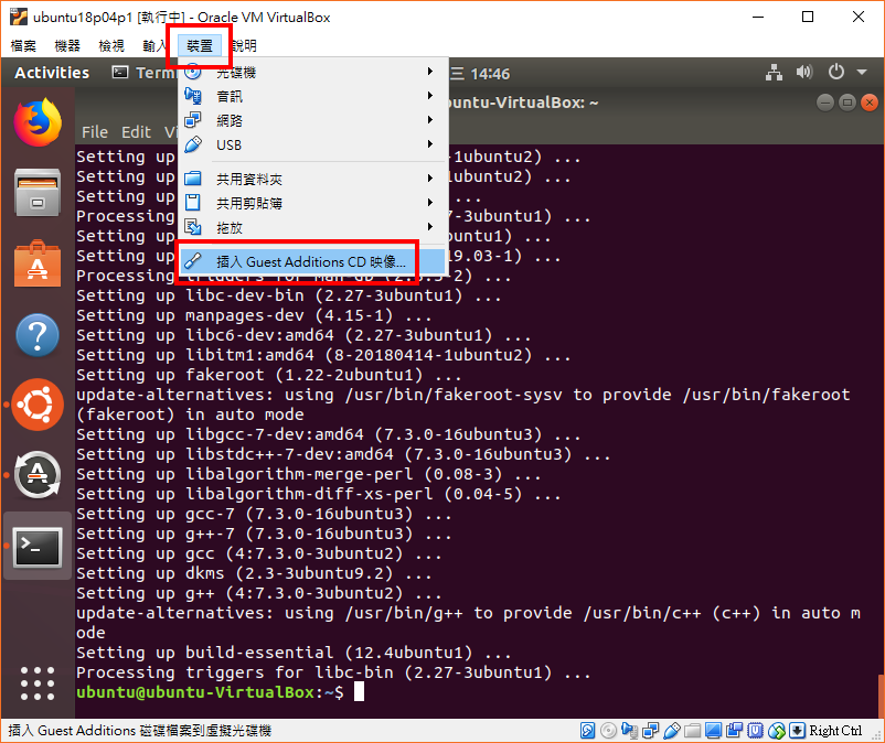 4、更新 Ubuntu 18.04.1 及安裝 VirtualBox 驅動程式。