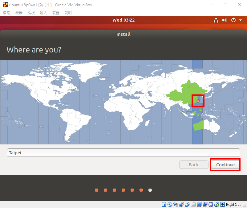 點選「Taiwan/Taipei」【圖示】→【Continue】。
