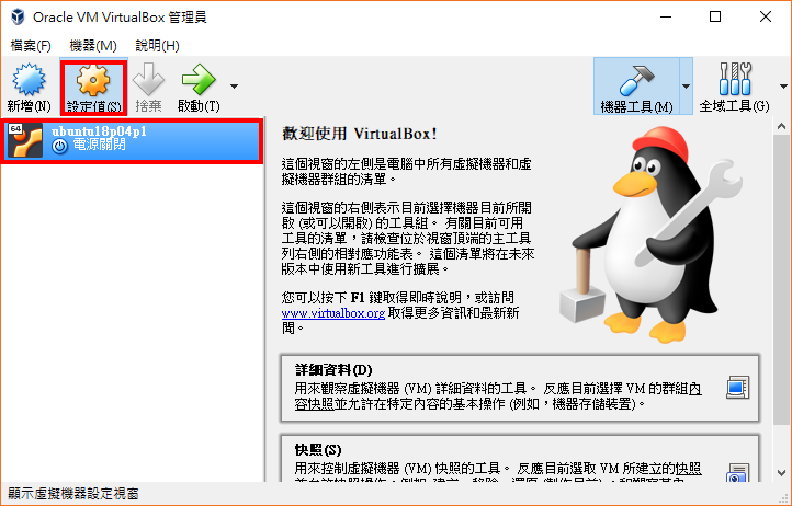 0、如何安裝 Oracle VM VirtualBox 5.2.16 版,請參考之前的文章: