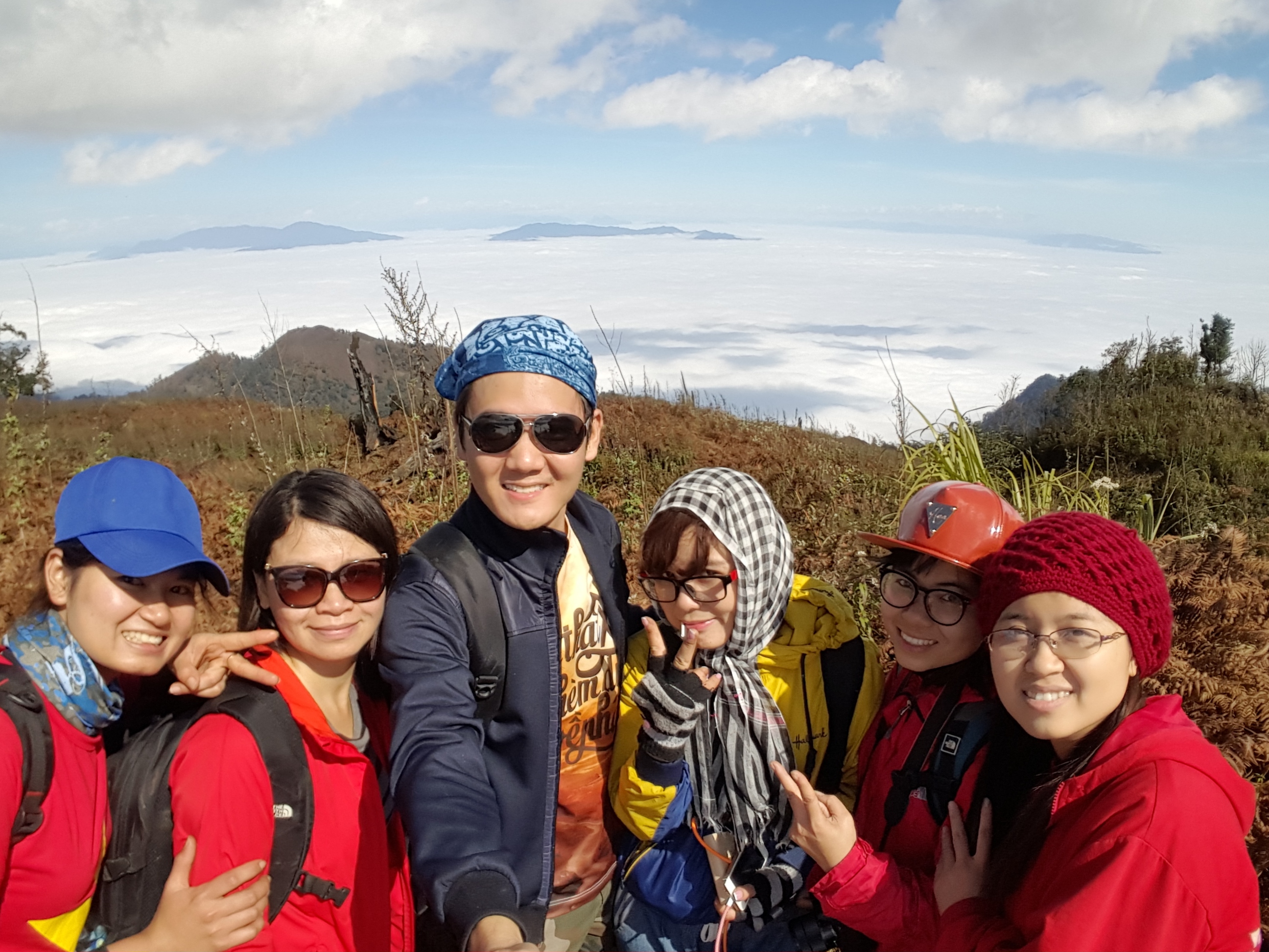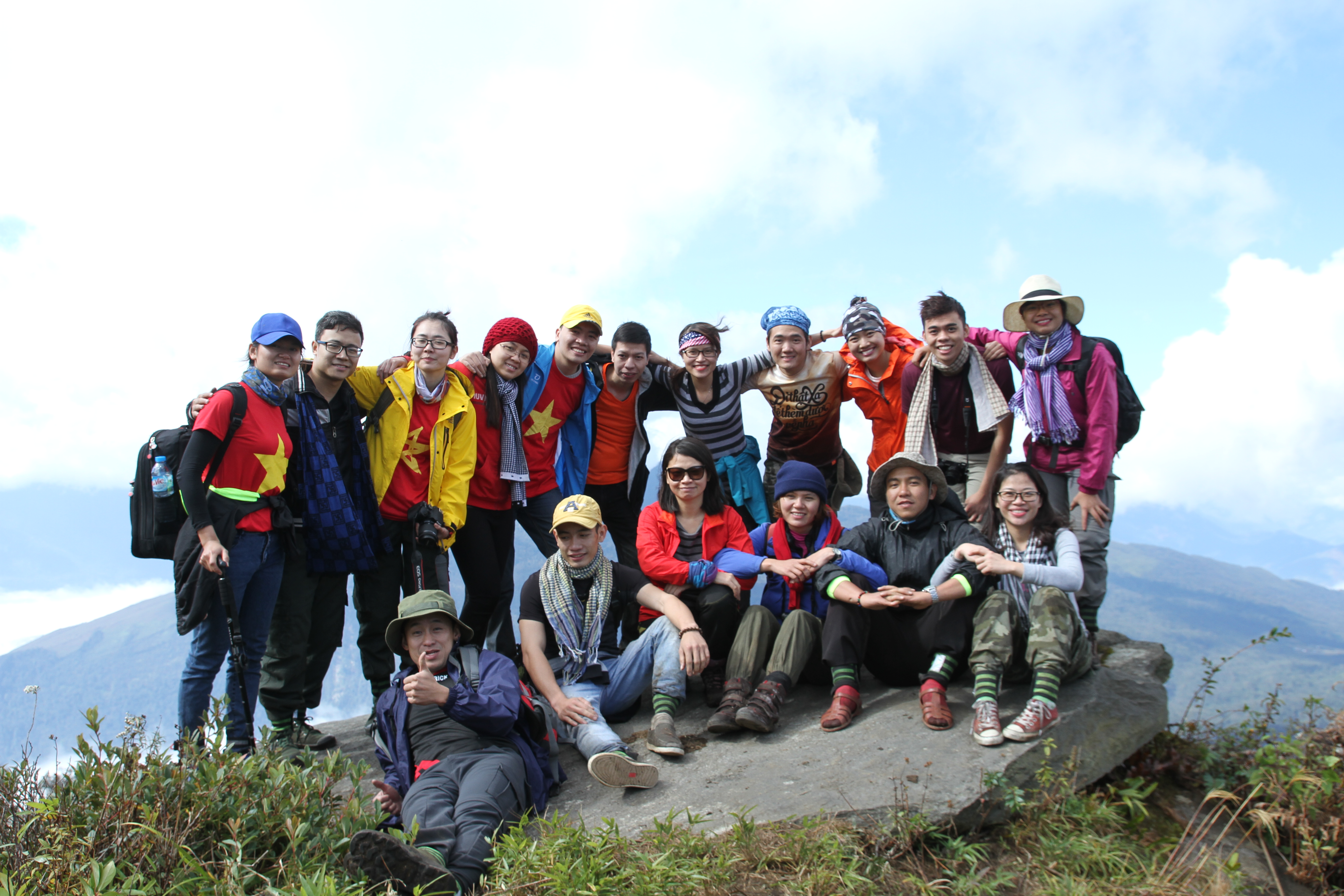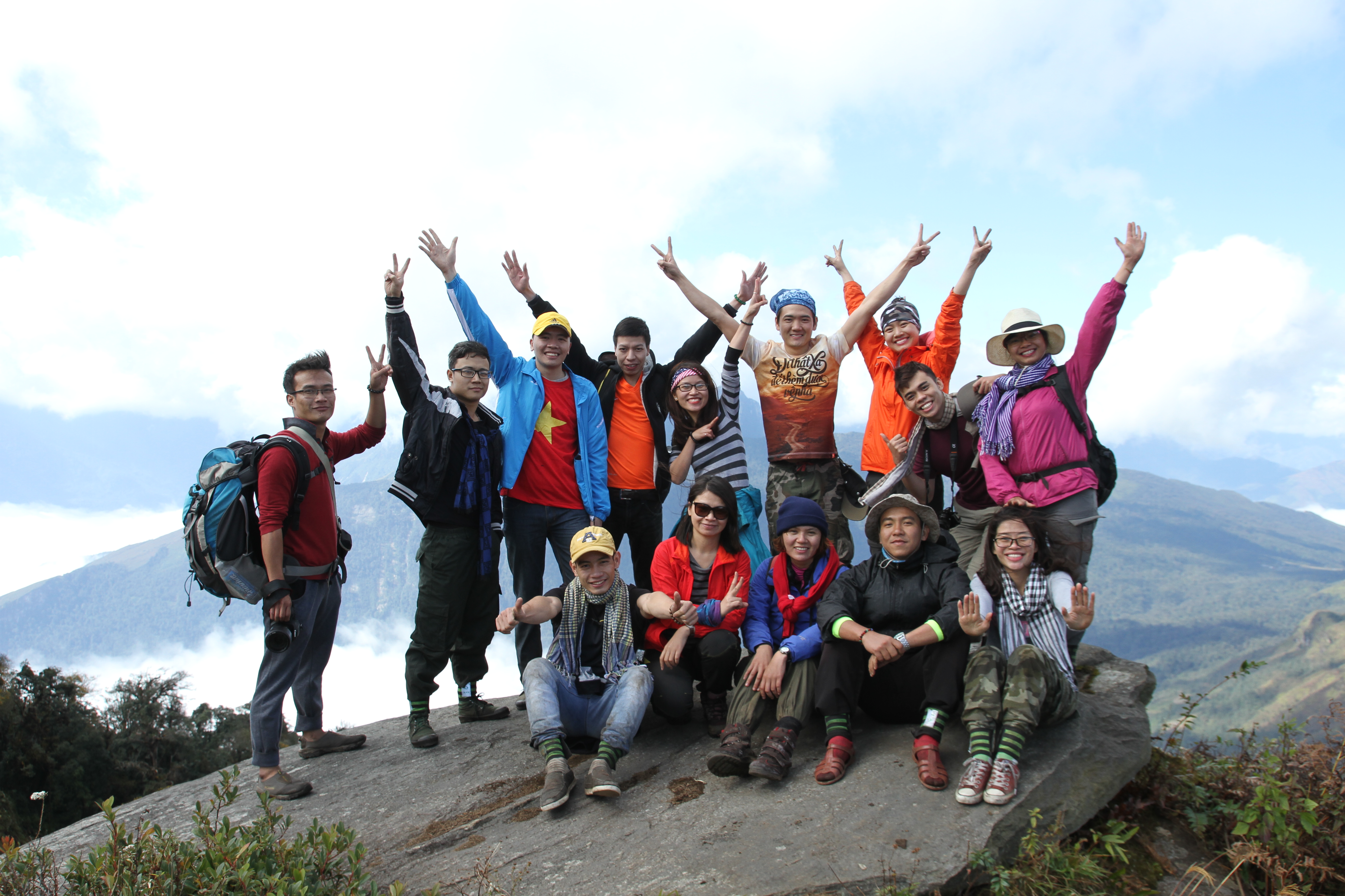 We climbed 2 days and 2 nights to get up and down the mountain. It was raining and very cold. We were very tired but in the end we also conquered the sixth mountain of Vietnam. We are very happy to climb to the top, the top of the mountain is a sea of clouds. so amazing, it was very beautiful