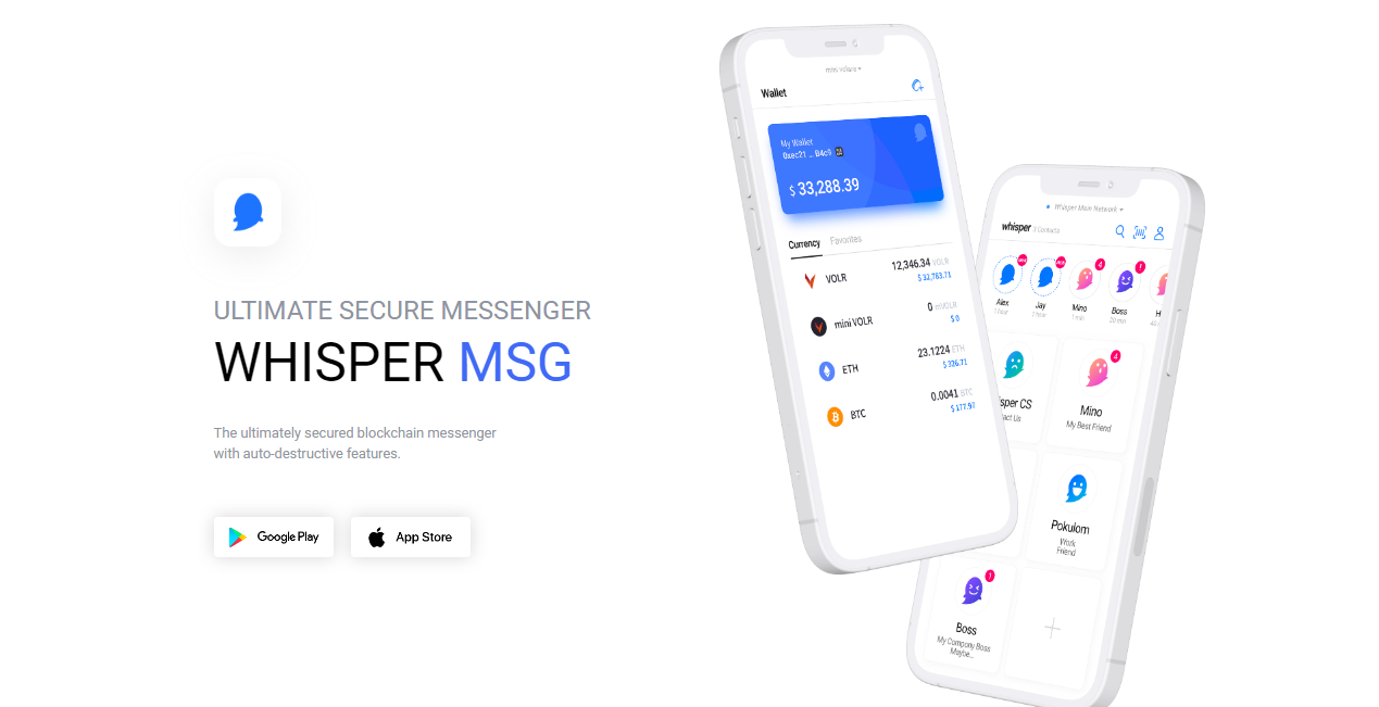 Whisper is a fully encrypted messenger secured by blockchain technology. Created by a team of former Google and Facebook employees, Whisper is the most secure and anonymous messenger available on the market. This is achieved through the widespread use of blockchain technology to store all messages and data sent between users.