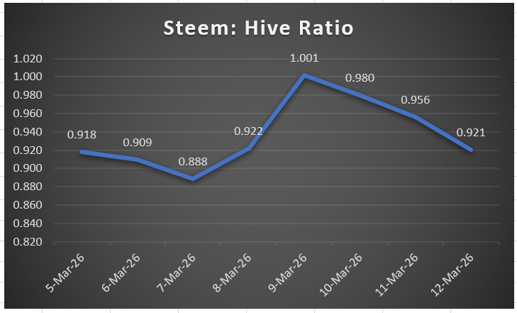 | Date | Steem | Hive | Steem: Hive Ratio |