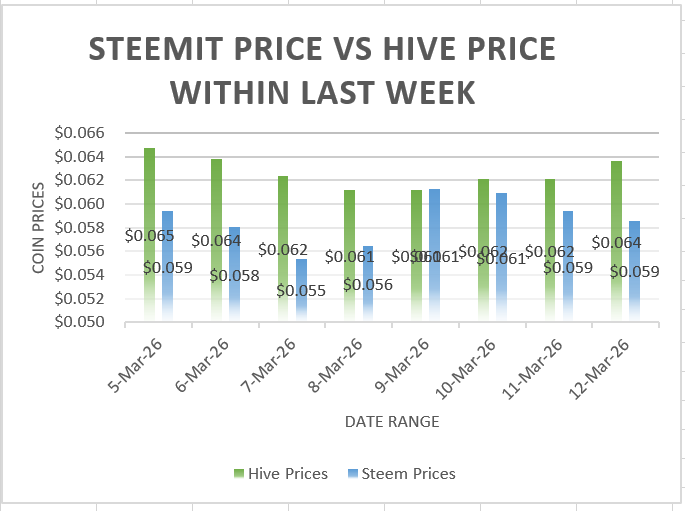 First, let’s Look into the Price variation of Steem & Hive Last week.