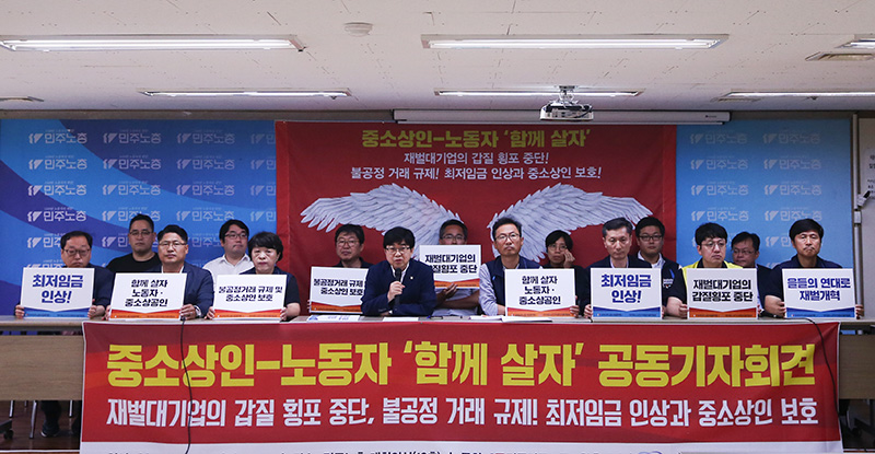 2015년 음식숙박업의 창업 3년 후 생존율이 30%에 불과할 정도로 자영업 부문의 과당경쟁은 심각한 상태이다. 그런데 최저임금 인상 부담에도 불구하고 고용원 있는 자영업자의 신규 진입은 계속되고 있다. 인구구조 변화로 50세 이상 인구가 급증하고 있다. 사회안전망이 취약한 상태에서 고령화는 급속히 진행되는데 퇴직 연령은 그대로고, 경기가 안 좋으면 그나마도 당겨진다. 연금은 충분하지 않고 아이들 교육비는 내야 하기에 노동시장 은퇴자들이 준비 없는 생계형 창업에 뛰어들게 된다. 특별히 그 분야 기술도 경험도 없이 프랜차이즈 본사와 계약을 한 점주들이 바로 이들이다.