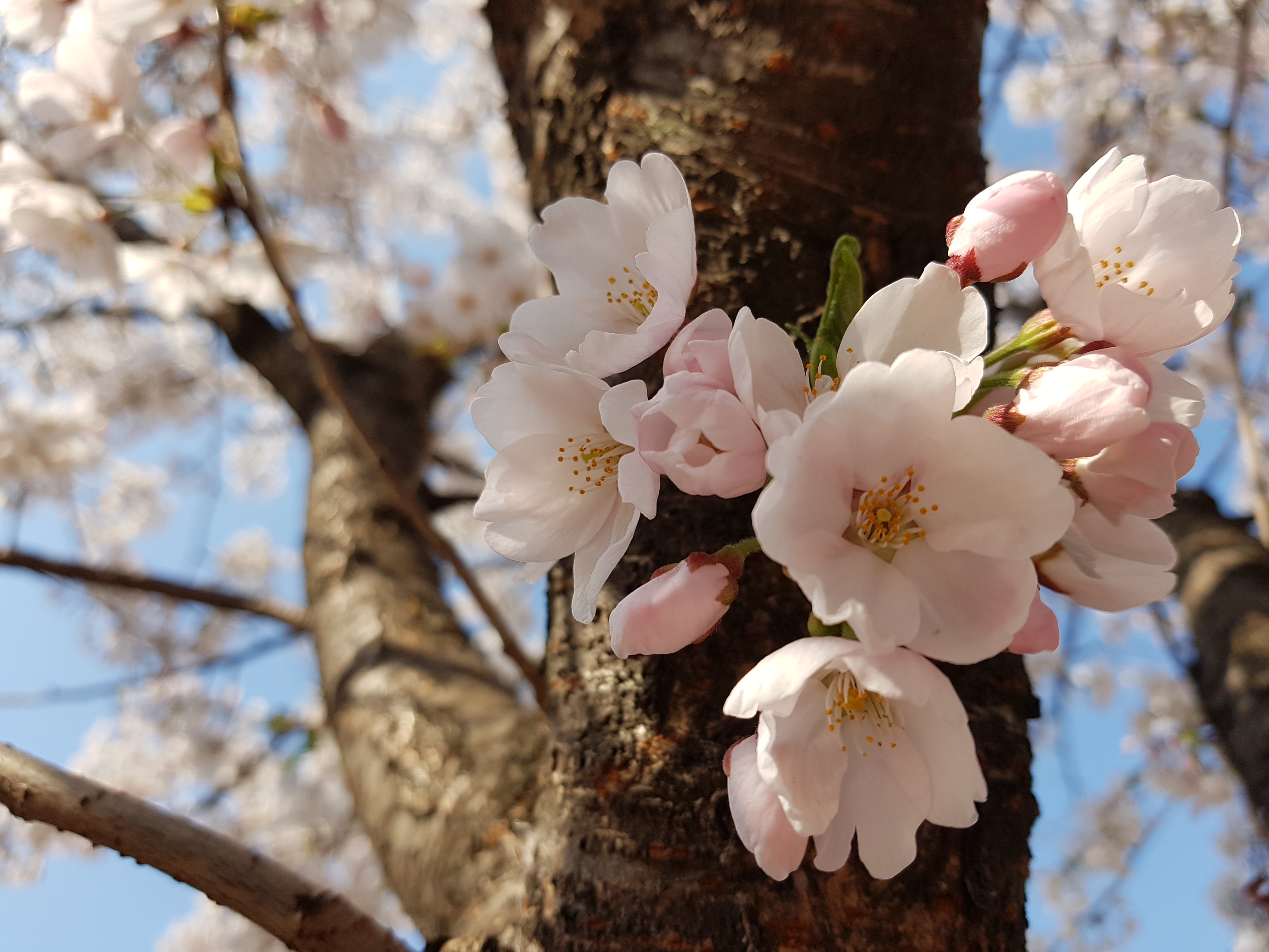 고산지대라 집 앞에 핀 벚꽃은 이제 만개했습니다.